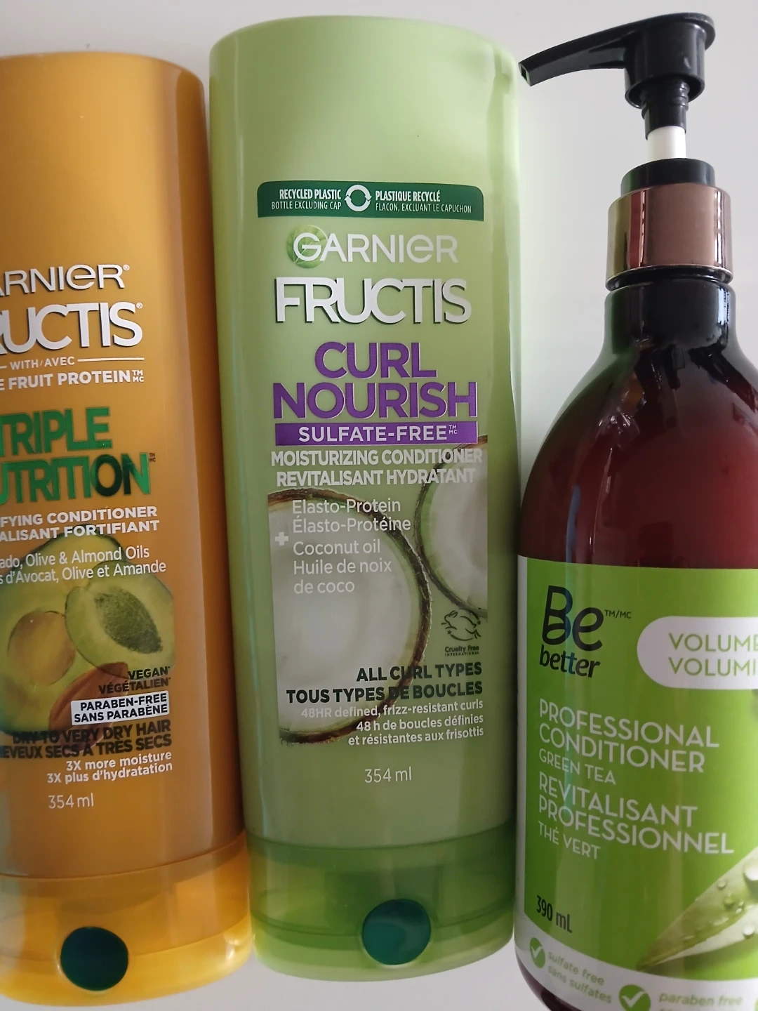 - Garnier Fructis triple nutrition with active fruit protein fortifying conditioner with avocado, olive and almond oils
