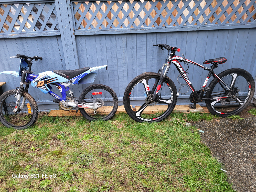 81I'm selling our bike it been long time we don't used it. the red one is flat tire I don't know how to fix it. it just been outside on our back yard that's we decided to sell. the chain both bike get rush but not that bad it still fixable..