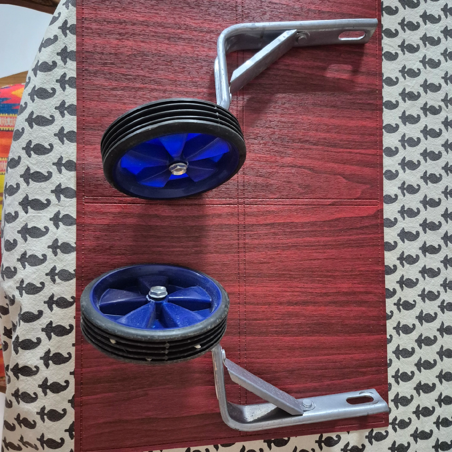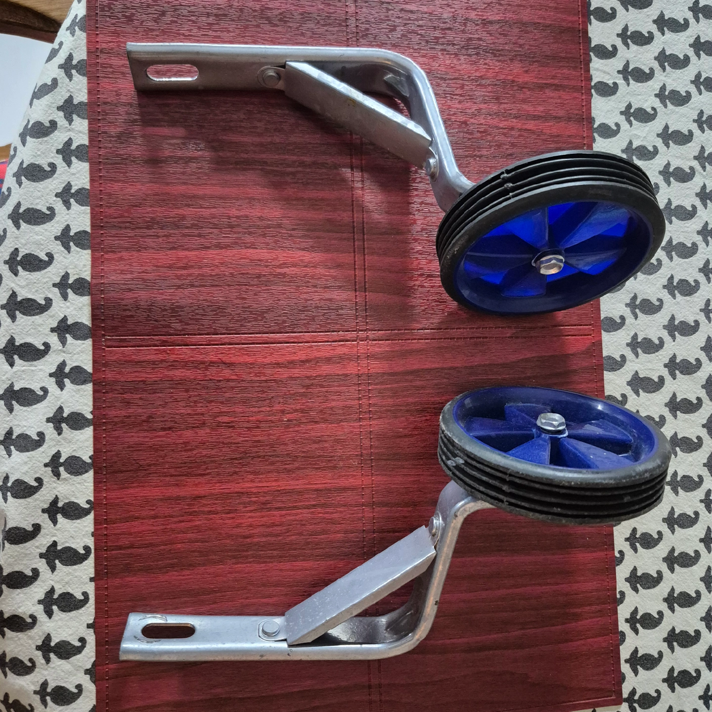 Bike training wheels in good condition! These training wheels are perfect for helping your little one learn to ride their bike. The wheels are blue and have a sturdy construction for added safety and stability