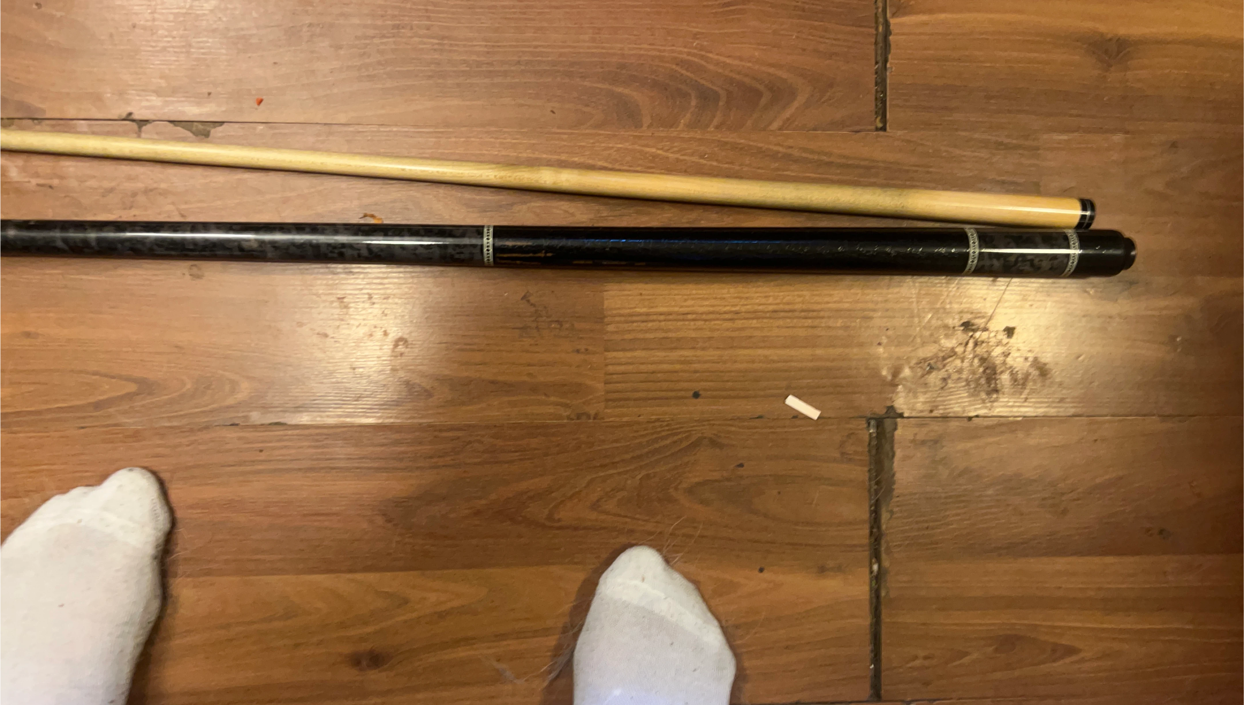 88Selling a set of two billiard/pool cue sticks. One is lighter wood, the other is a darker, possibly graphite-coated wood. Good for anyone looking to start playing!