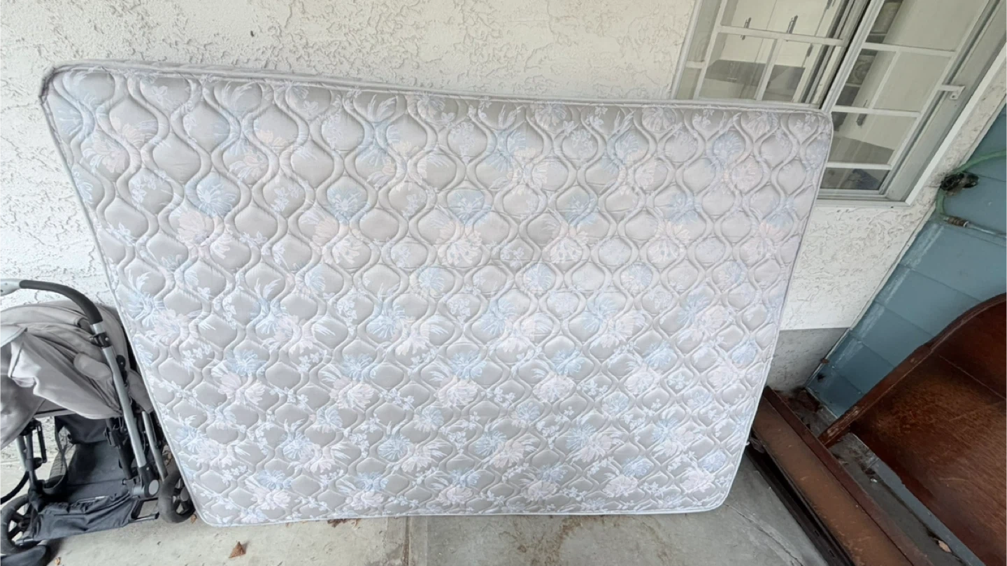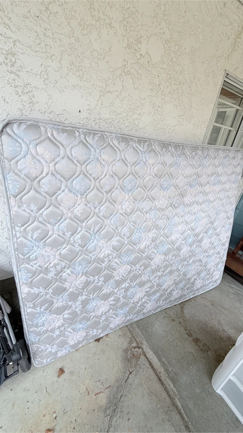 Queen size mattress with a floral pattern. It's in good condition. This mattress would be useful for a guest room or a student's dorm.