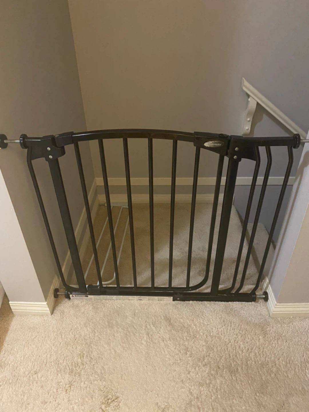 This Dreambaby pressure mounted baby gate helps keep your little one safe. It's made of durable metal and has a swing-open door for easy access. This gate is ideal for doorways or bottom of stairs. Selling at low price because the gate spring is not working so it won’t be able to stay open. It is still able to open but once you let it go it just close itself.