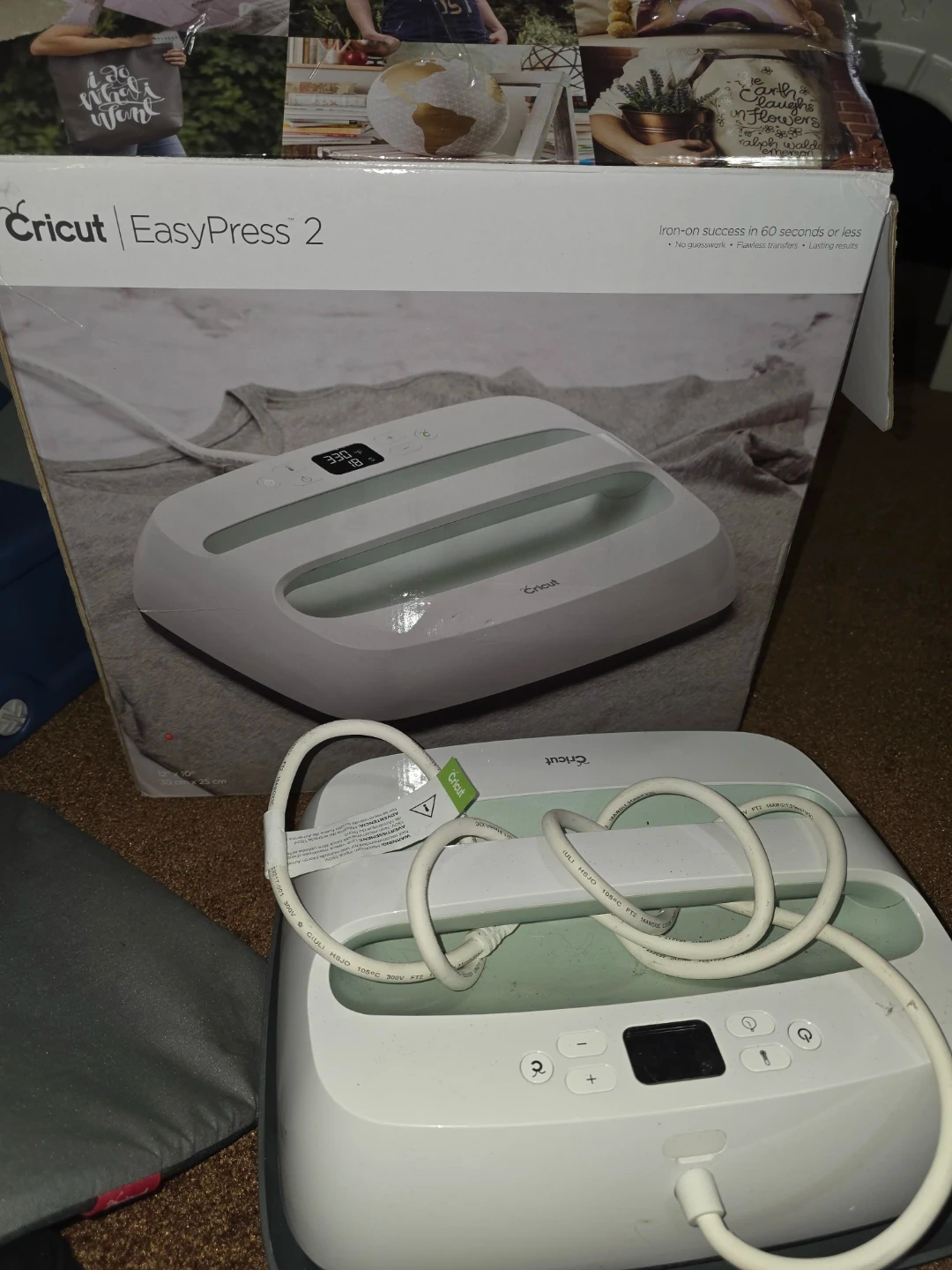 Cricut EasyPress 2 heat press. Iron-on success in 60 seconds or less. It has no guesswork and flawless transfers. This device is great for making custom t-shirts and other apparel.