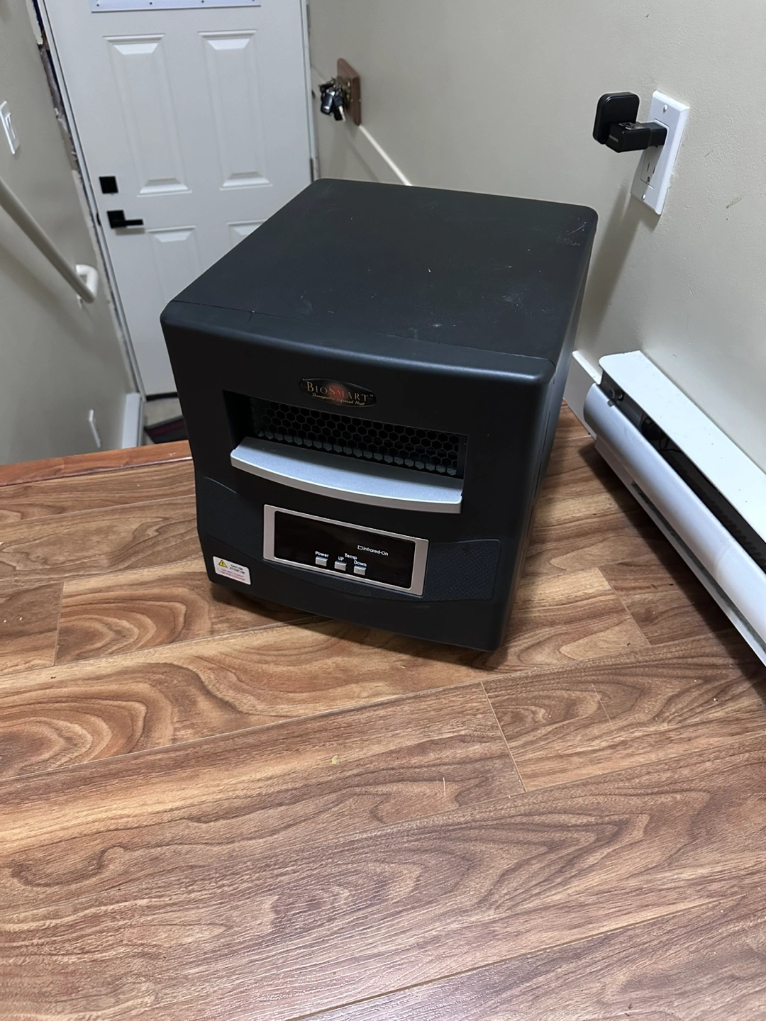 270Infrared heater with wheels and digital display. Adjustable temperature control.