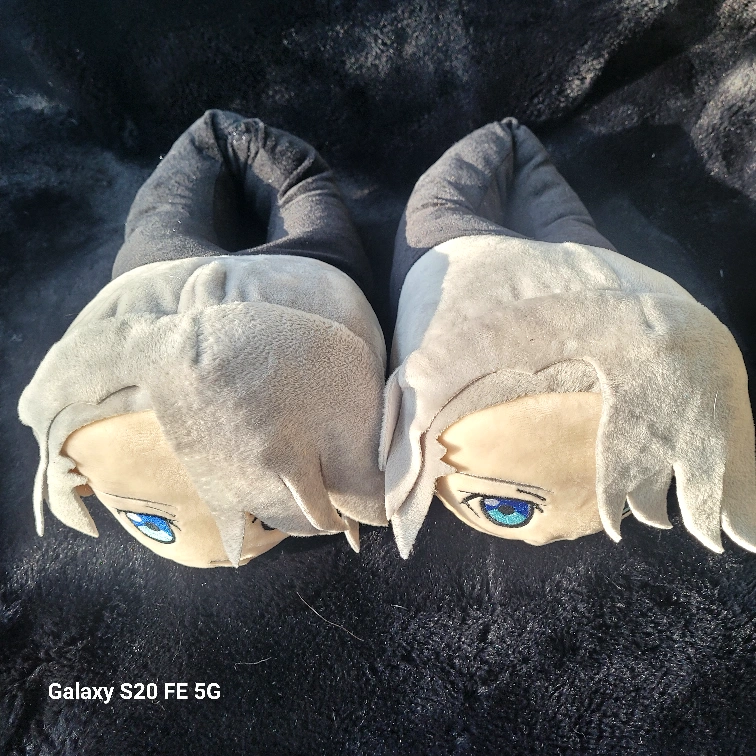 23Pair of grey and black Yuri on Ice anime character slippers. Large size. Made in China. For ages 14 and older. p/u in Murrayville