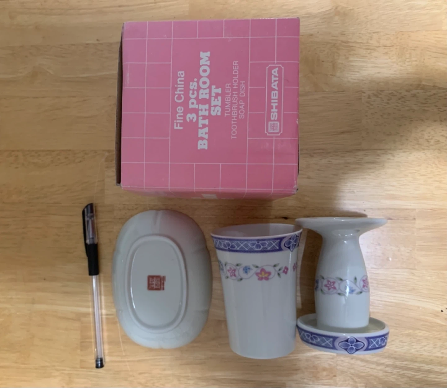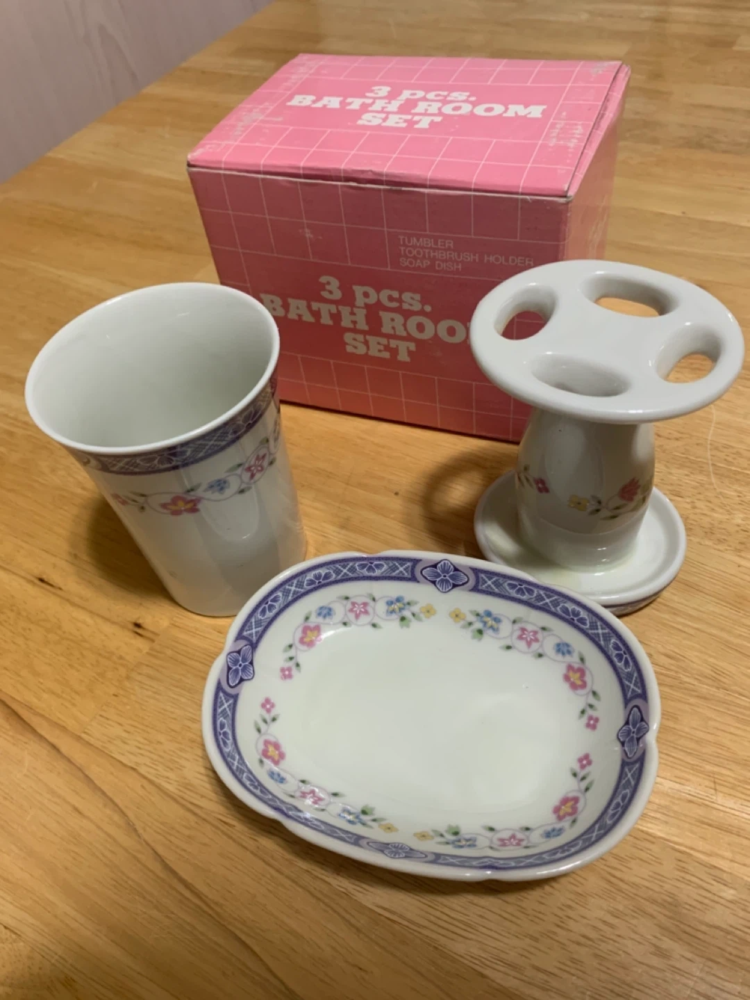 3-piece bath room set. Includes a soap dish, tumbler, and toothbrush holder.(brand : Shibata japon)