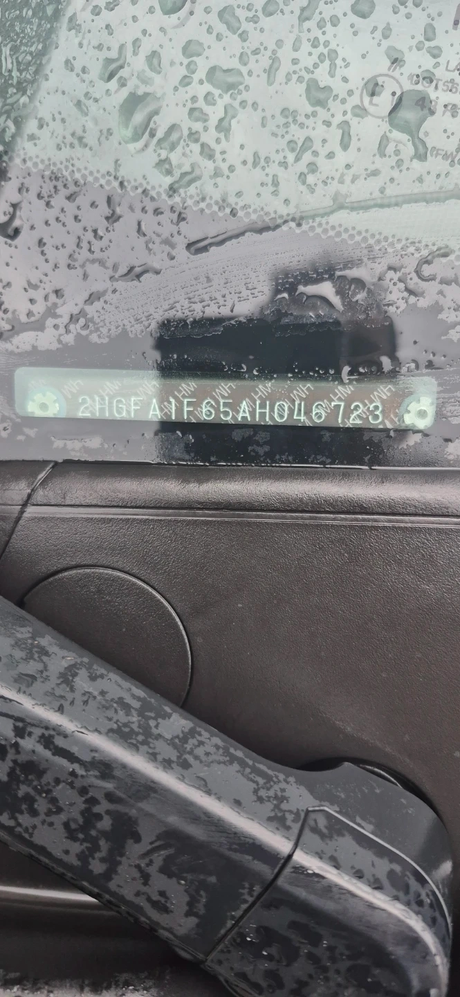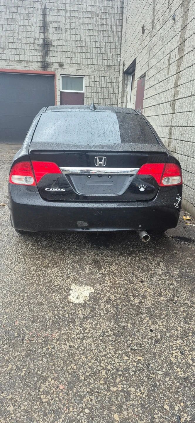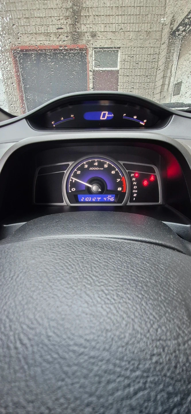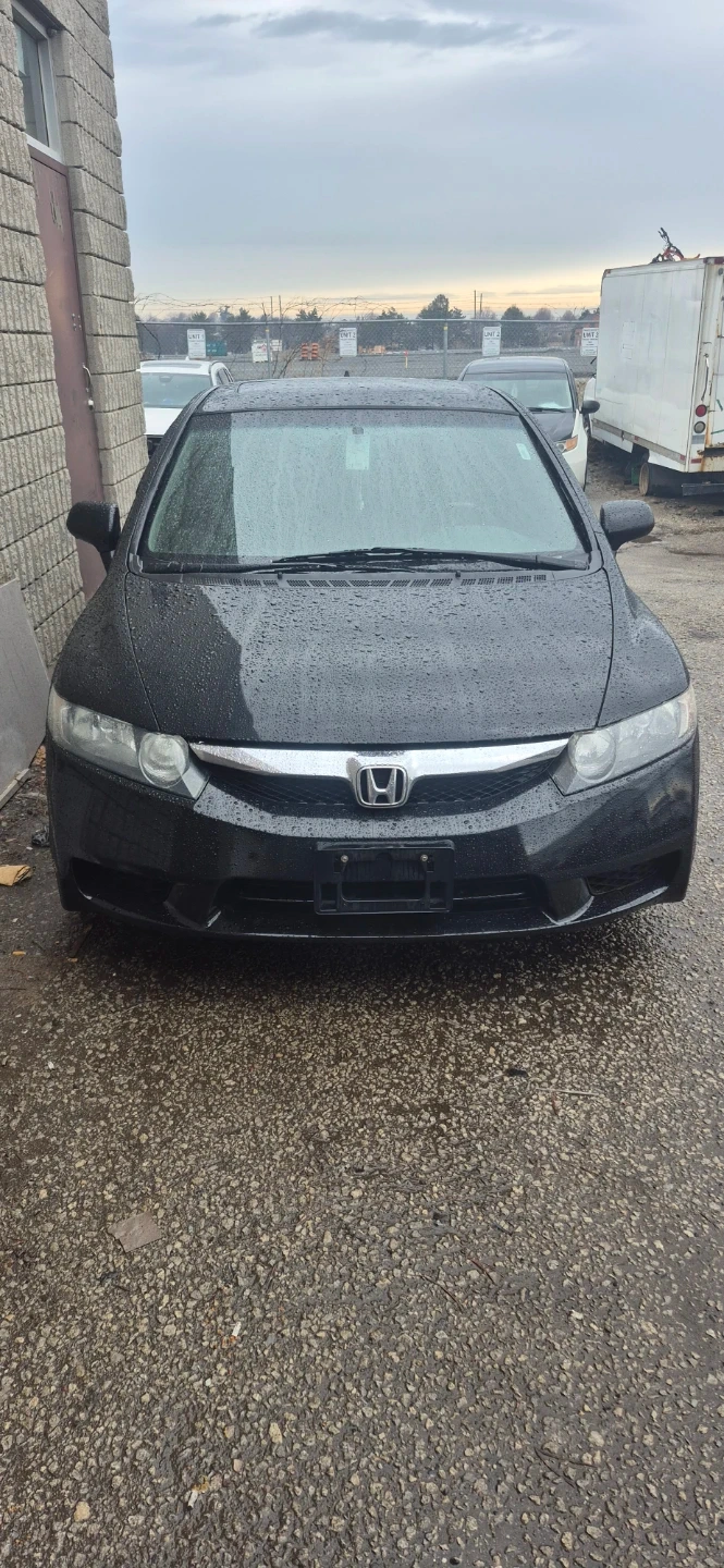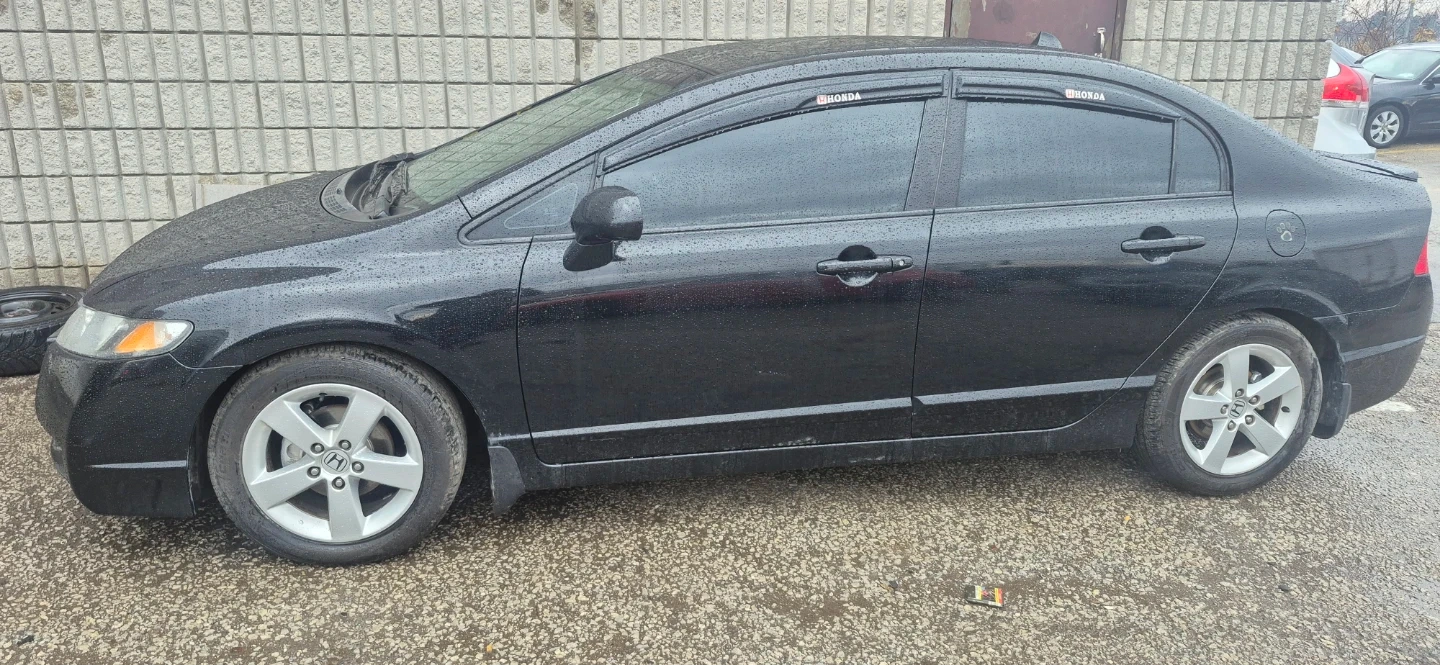 Black Honda Civic sedan. Displays mileage of 210,312 km. Has a 1.8L 4-cylinder engine with automatic transmission. Fuel efficient vehicle.