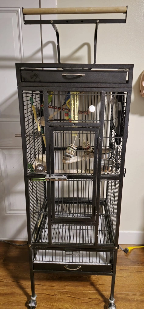 5Selling a bird cage with a variety of accessories! It's in great condition and ready for a new feathered friend. Includes perches, toys, and more to keep your bird happy and entertained