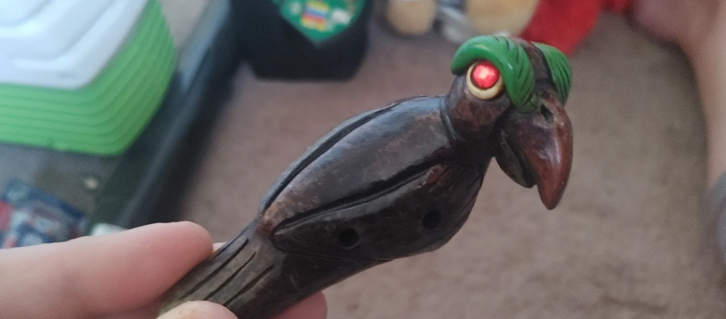 97This is a bird ocarina. It appears to be handmade and could be a fun little instrument or decorative item