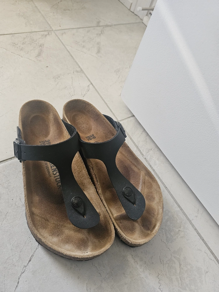 Selling a pair of Birkenstock thong sandals in size 39. They're well-loved and ready for a new home!