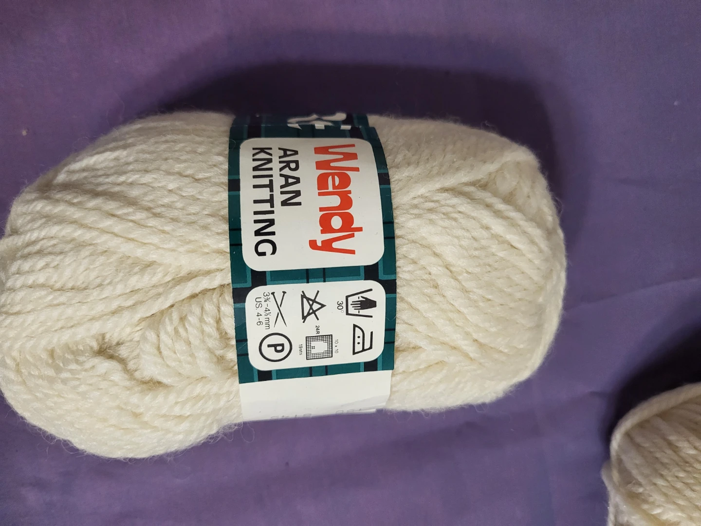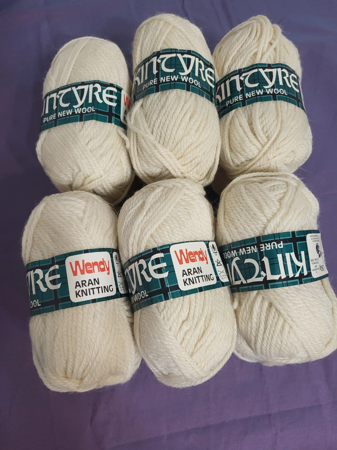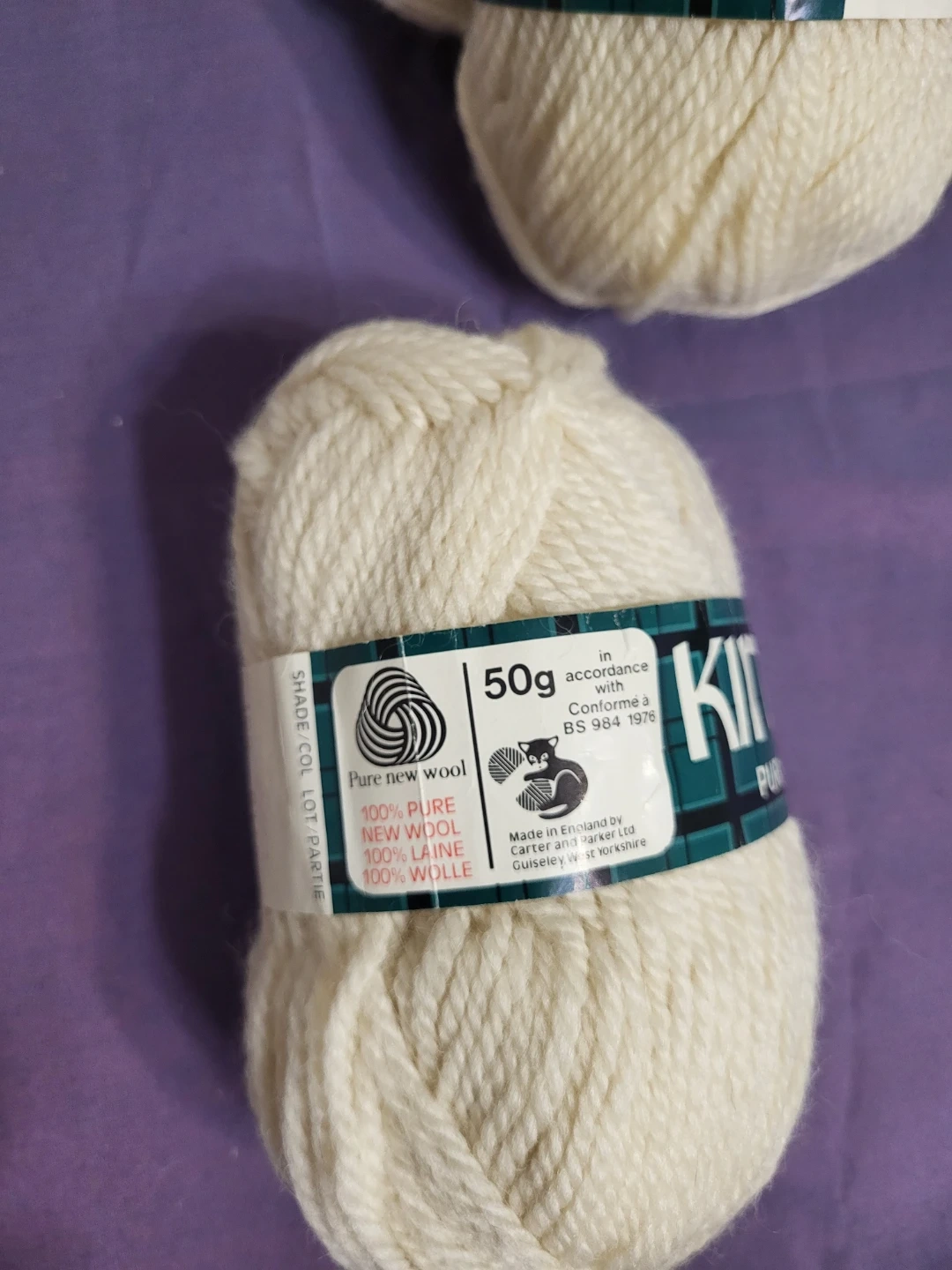12 balls 50 g of England made (West Yorkshir) knitting yarn in a cream colour.