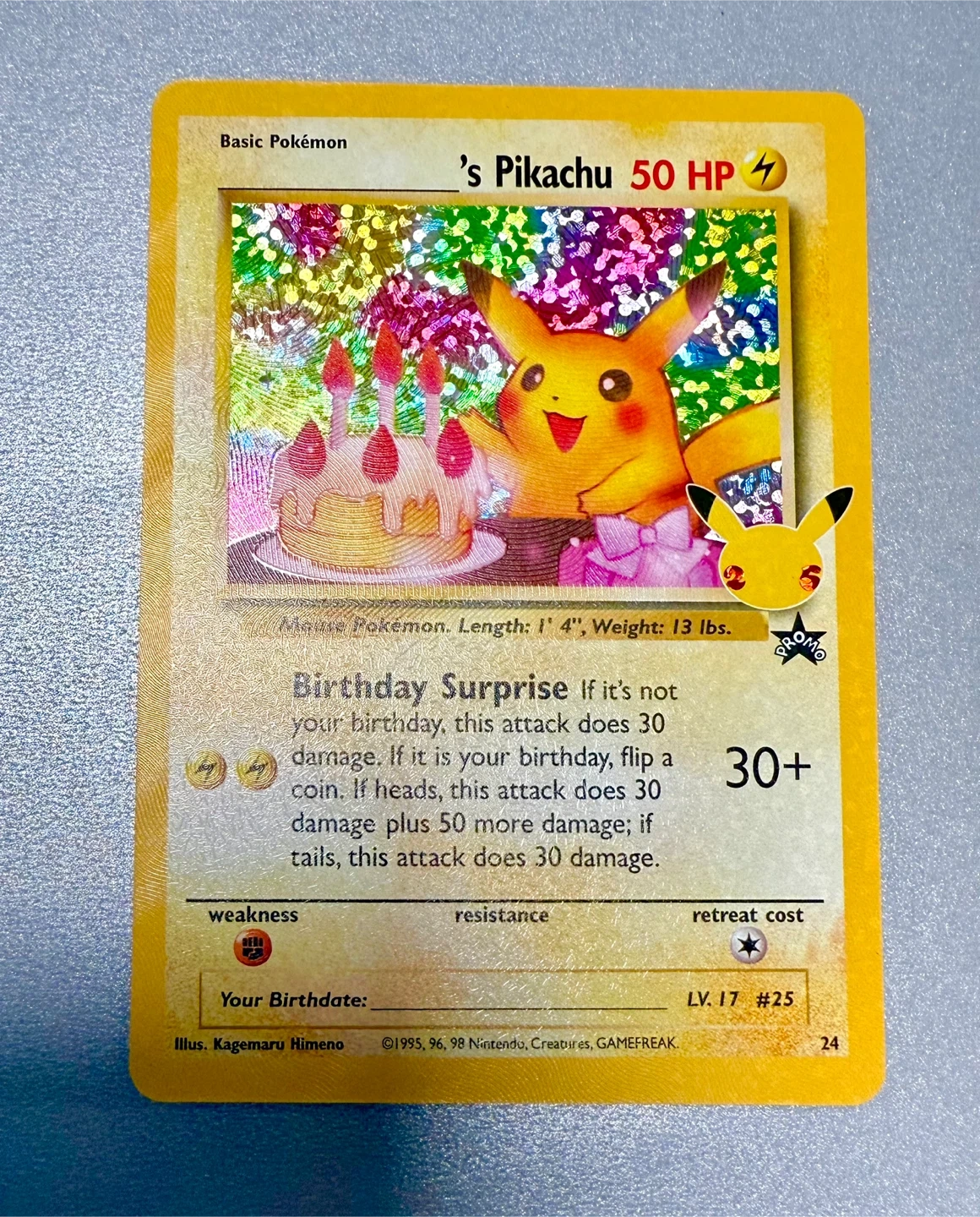 15Selling a Birthday Pikachu Pokemon card! It's in great condition and ready for a new home. This card is from the 25th anniversary collection.