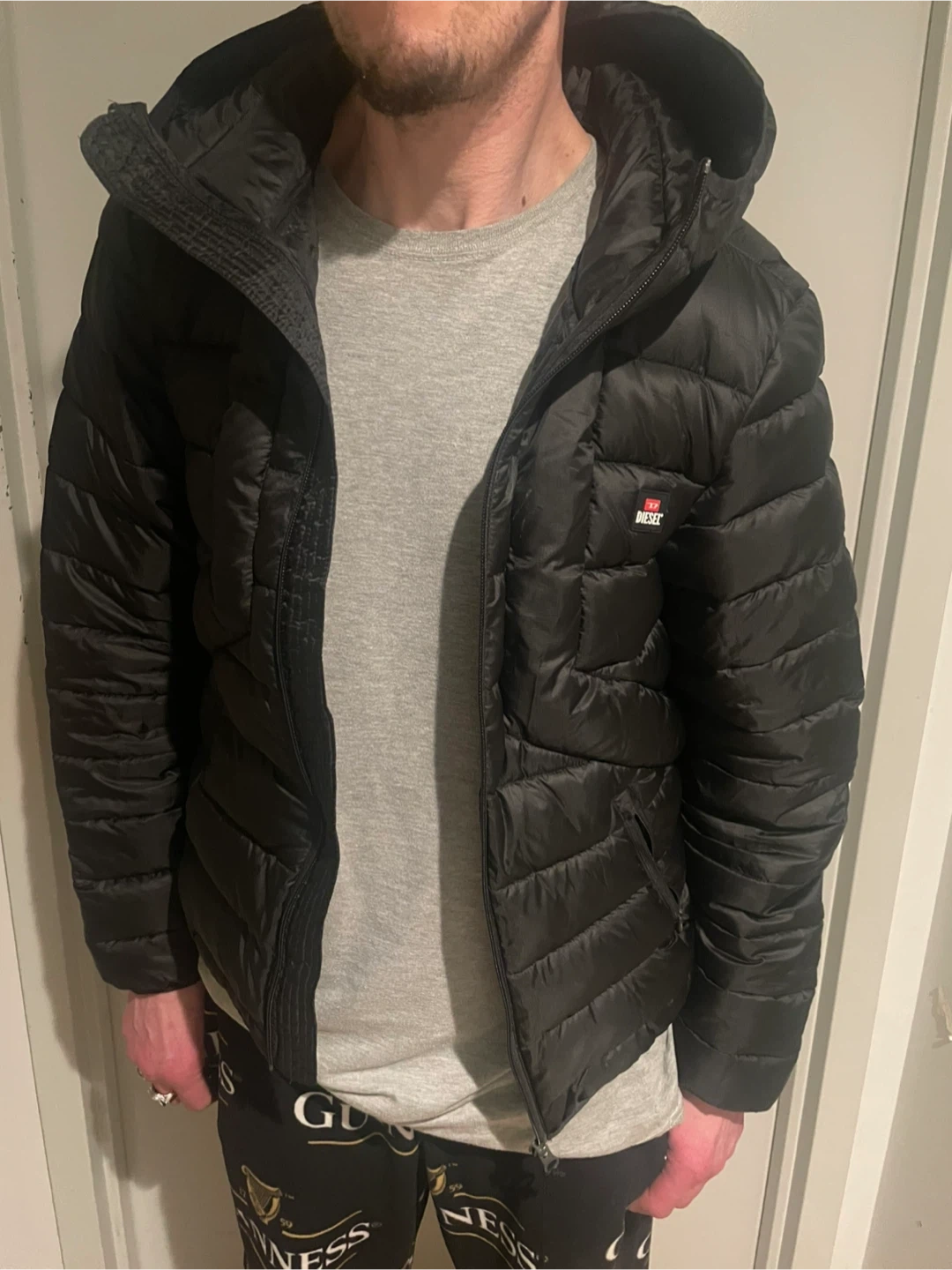 Diesel puffer jacket in black. Size is small. But fits quite large brand new Comes with original tags.