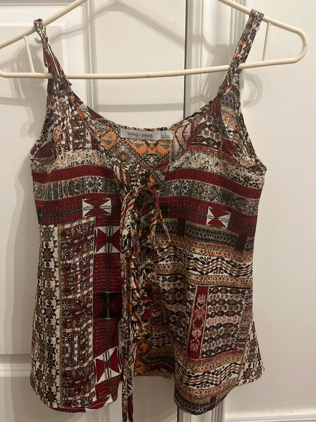 89Selling a cute tank top from Bishop + Young. It's a size small and features a unique patterned design. It's in great condition and ready for a new home!