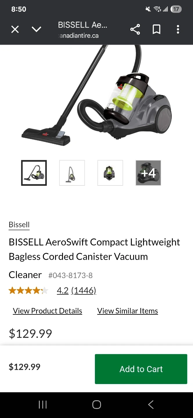 11Selling a Bissell AeroSwift Compact Lightweight Bagless Corded Canister Vacuum Cleaner. It's in great condition and comes with the original box! Originally bought for $129.99 asking 70$ still works like new