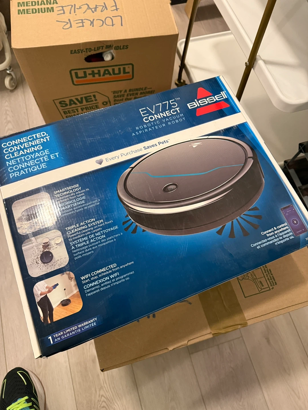 Selling a mint condition Bissell EV775 Connect robotic vacuum! Key features include: - SmartSense Technology that automatically adjusts to different floor types - Triple Action Cleaning System for powerful cleaning on hard floors and medium-pile carpets - WiFi Connected, allowing you to start, stop, and schedule cleaning from anywhere