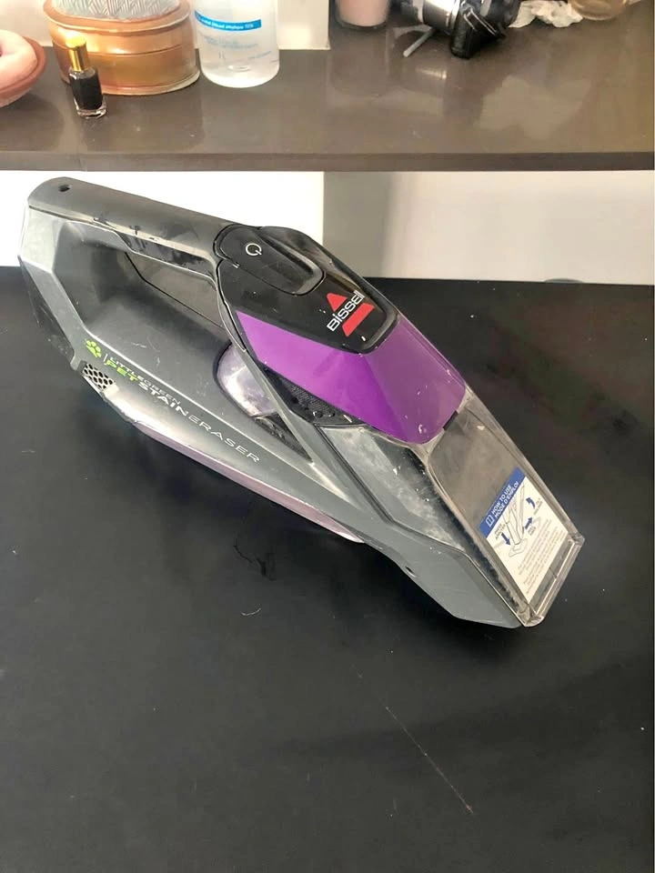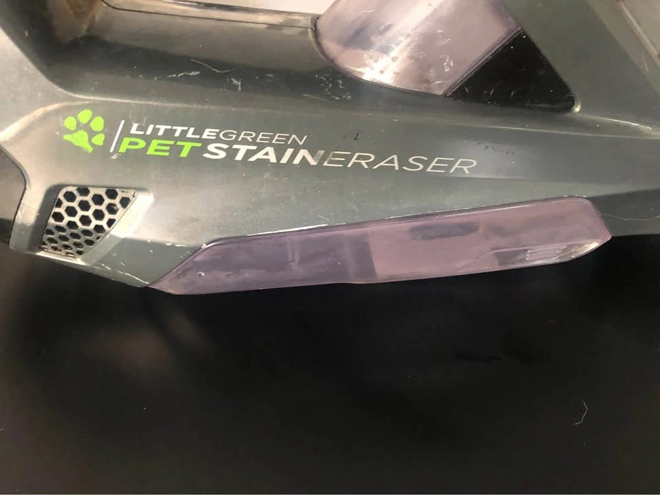 Bissell Little Green Pet Stain Eraser cordless cleaner. Great for cleaning pet messes, carpets, upholstery, stairs, and car interiors. Compact and easy to use. Cordless & rechargeable.