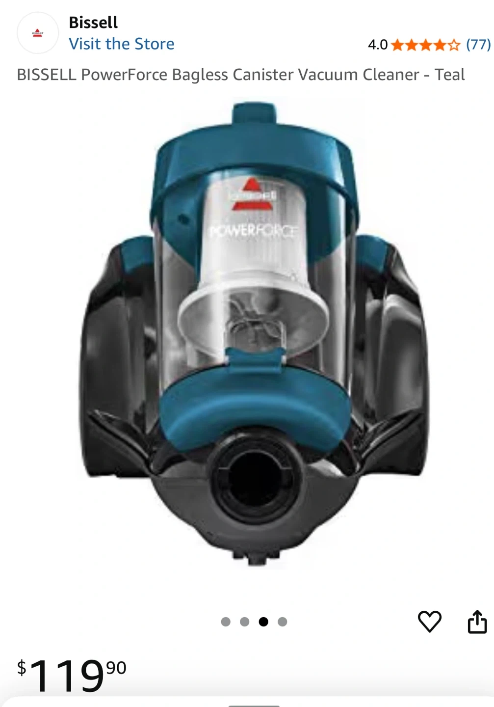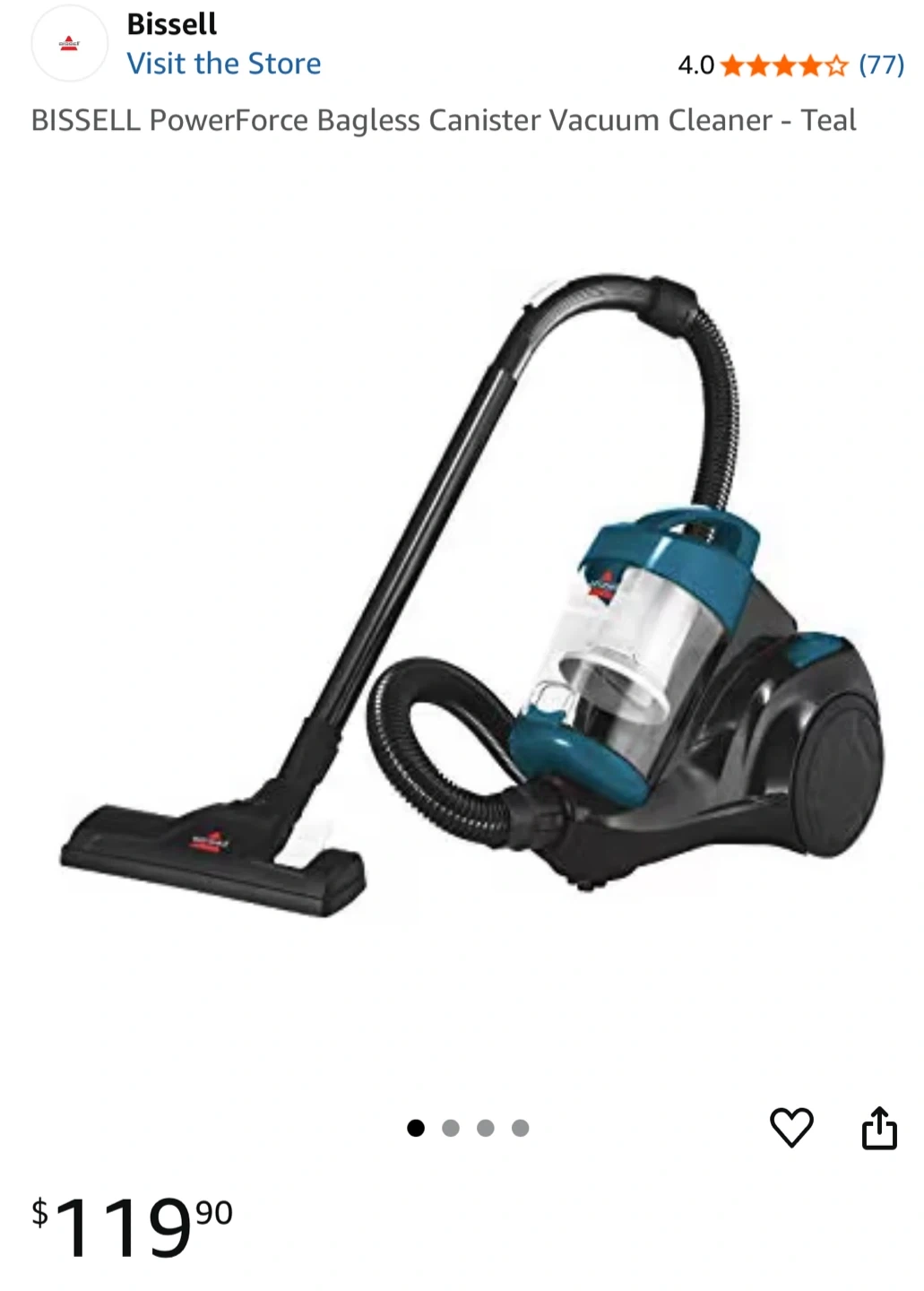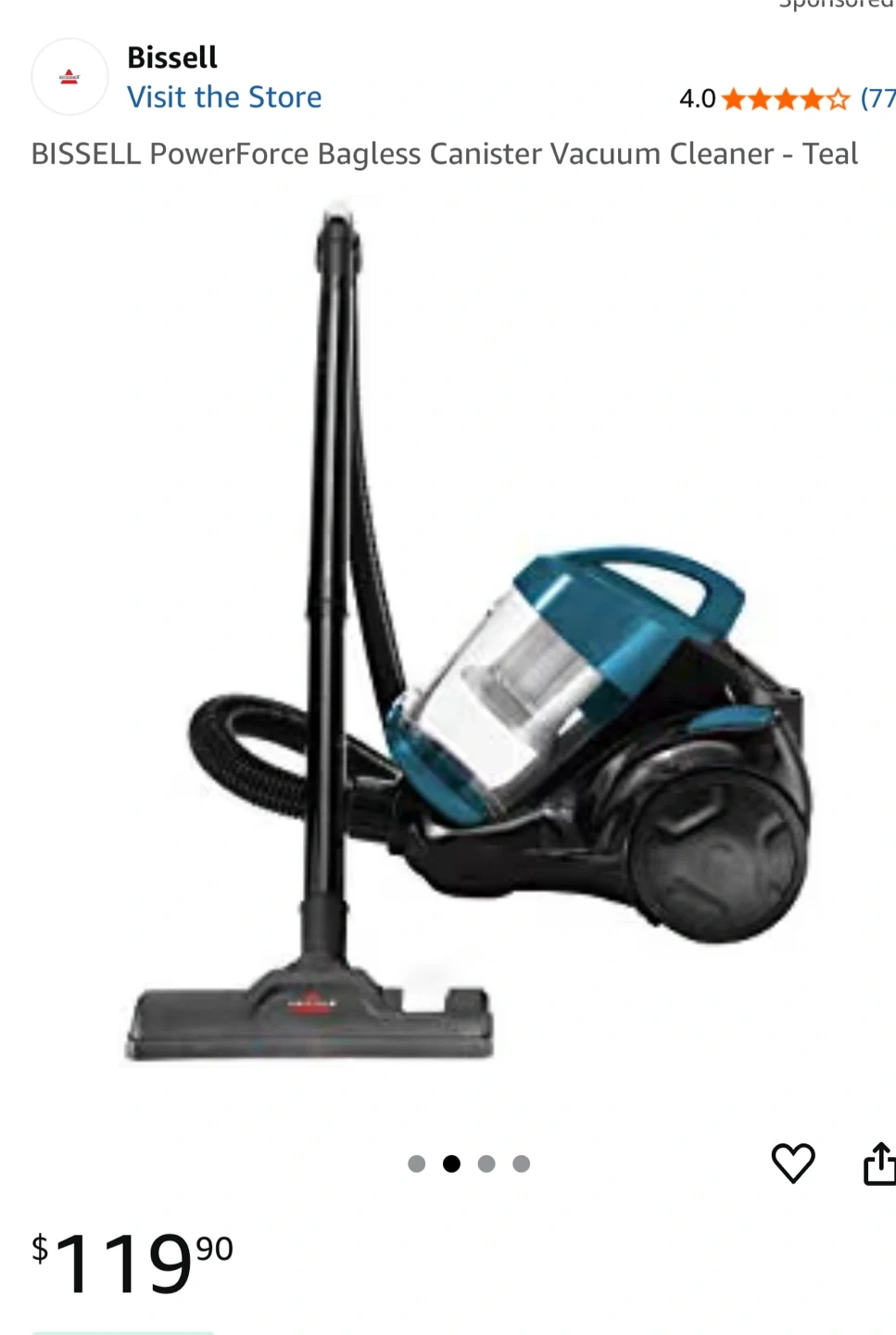Selling a Bissell PowerForce bagless canister vacuum cleaner in teal! It's a great vacuum for quick and easy cleaning around the house. Retails for $119.90