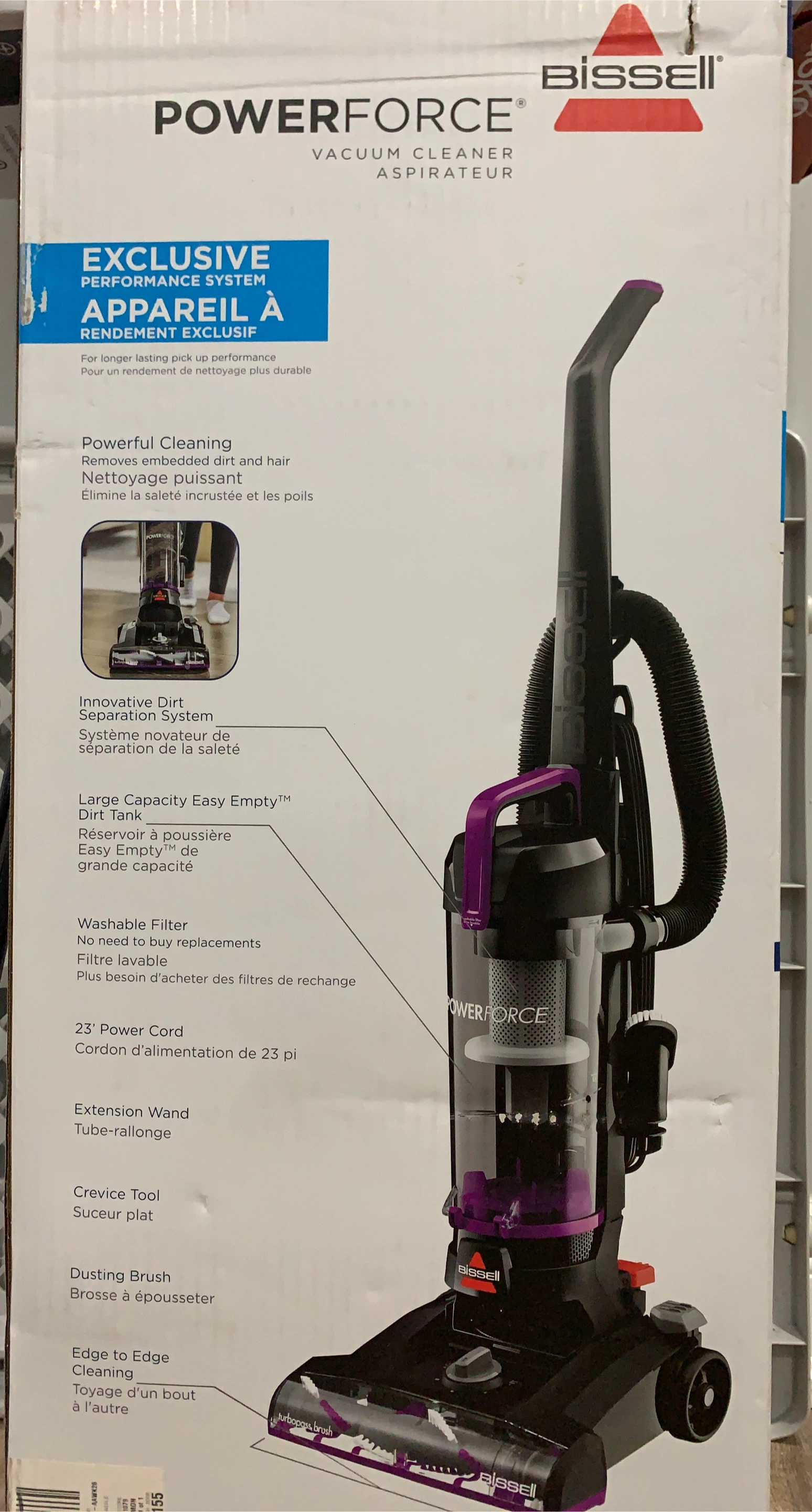 10Selling a Bissell PowerForce vacuum cleaner! It features: - Powerful cleaning to remove embedded dirt and hair - An innovative dirt separation system - A large capacity, easy-empty dirt tank - A washable filter (no need to buy replacements!) - A 23' power cord - Extension wand, crevice tool, and dusting brush for all your cleaning needs