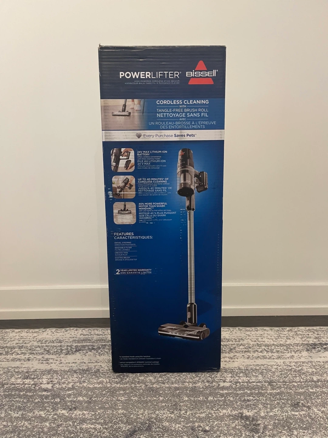 83I’m selling this brand new Bissell PowerLifter cordless stick vacuum. I originally bought it for my new place but ended up getting a bigger vacuum as a gift, so this one just isn’t needed. Key Features: • Cordless cleaning with a tangle-free brush roll • Up to 40 minutes of powerful cleaning per charge • Lightweight and easy to maneuver with swivel steering • Converts into a hand vacuum for furniture and cars • 24V lithium-ion battery + wall-mount storage It’s a great vacuum — especially for apartments, pets, and quick cleanups. Retails for around $140 after tax, so this is a great deal for something brand new. 📍Pickup in Toronto. First come, first served!