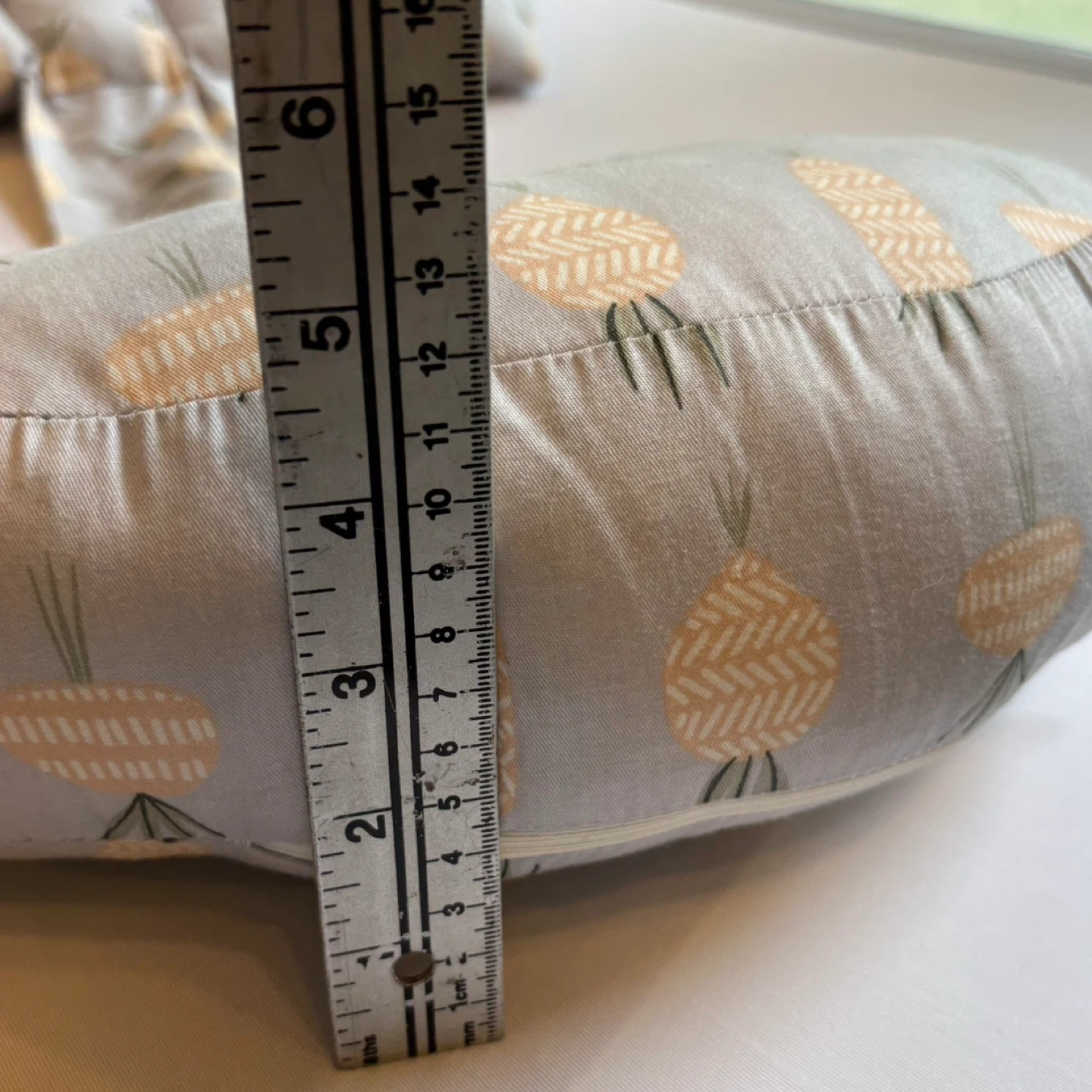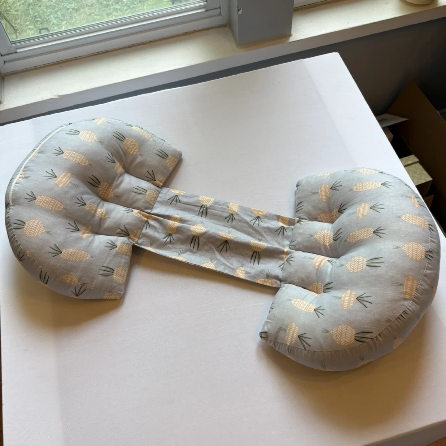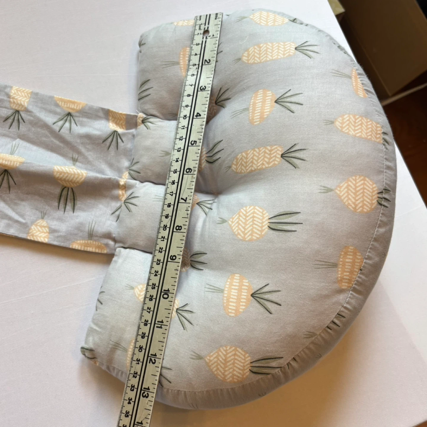 This Bitu Bitu side sleeping maternity pillow, adorned with a root vegetable print, offers support and comfort during pregnancy. This pillow has been used only a couple times and remains in good condition, ready to provide you with the best possible comfort. Key Features: Brand: Bitu Bitu Era: Modern Color: light blue/grey, yellow, green Print: Root vegetable print Features: Ergonomic design for side sleeping, Removable zippered cover for easy washing Condition: excellent used condition Size: one size See photos for measurements. Flaws: none noted Cross posted. If the ad is still up, then yes, it's still available! Grab this comfy cloud before someone else does! Winnipeg - Pick up only (Located 2 blocks west of Polo Park). Shipping options available through other platforms message me for details.