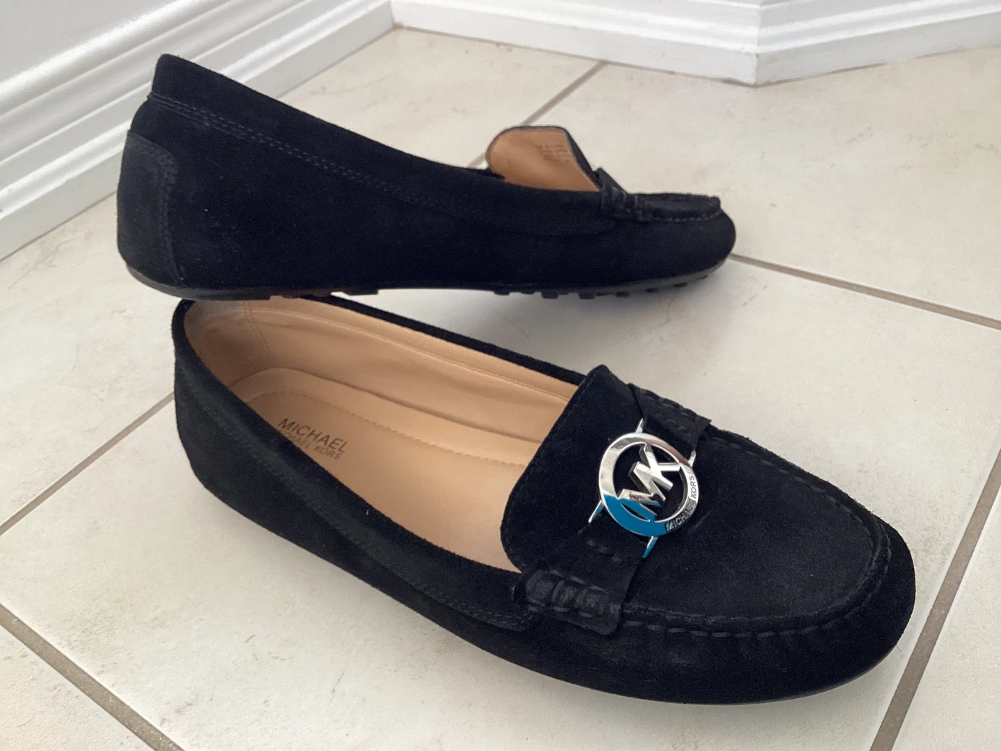 Michael Kors Black Suede Loafers with MK Logo