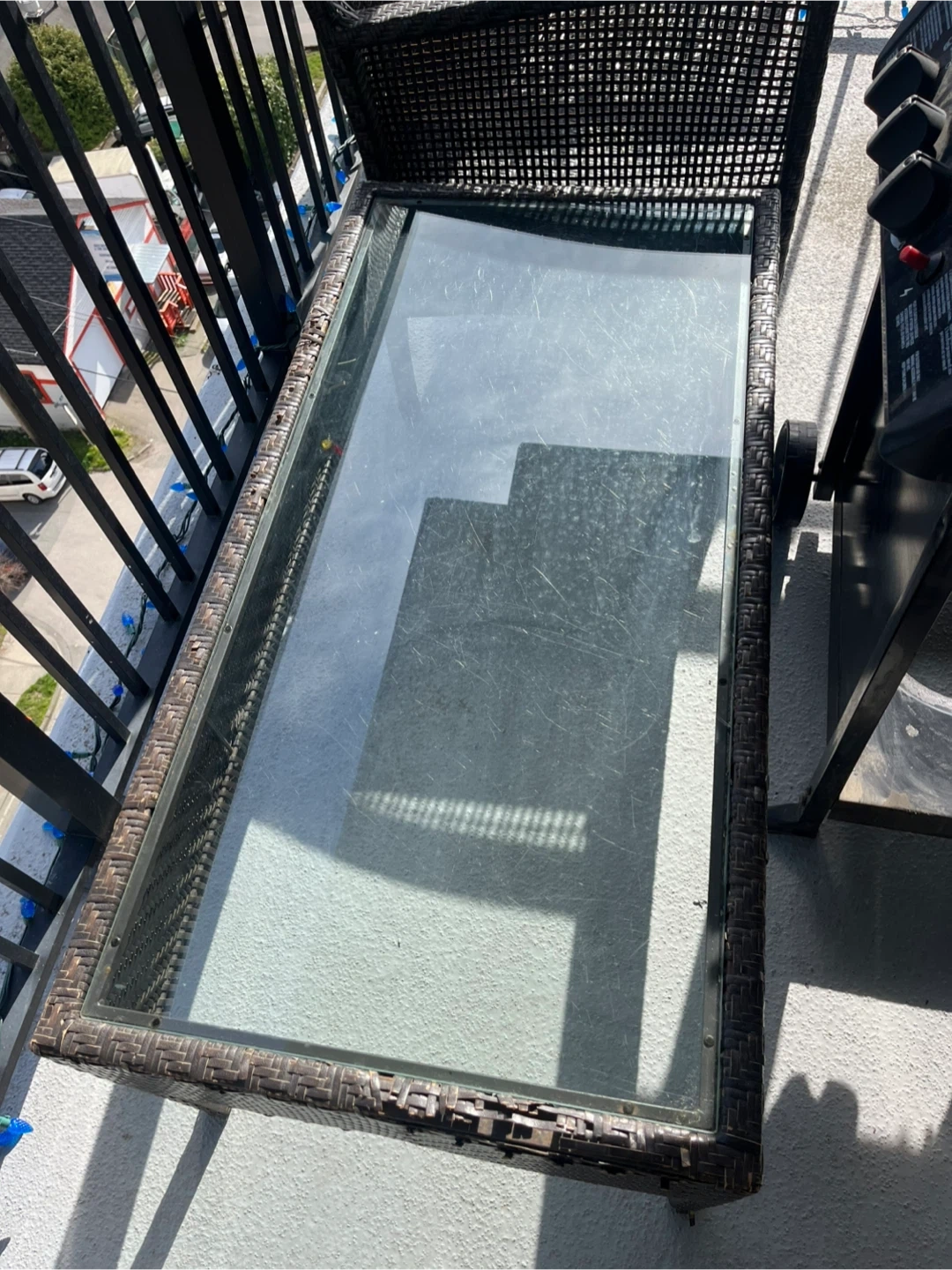 Wicker and Glass Patio Table
