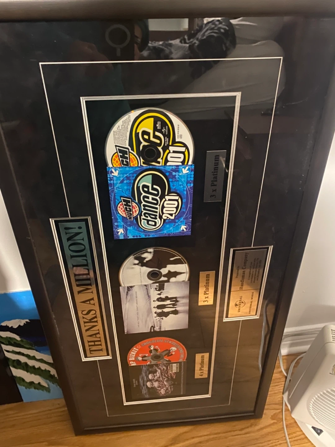 Selling a framed award display featuring MuchMusic CDs and platinum records! It includes MuchPop 101, MuchDance 2001, and other platinum-selling albums. A cool piece for any music fan!