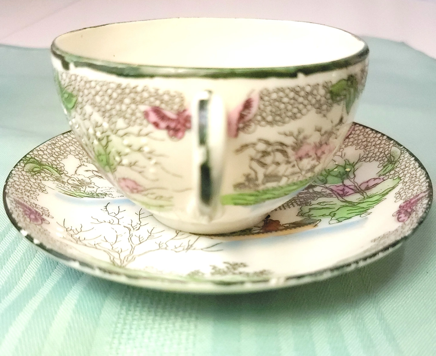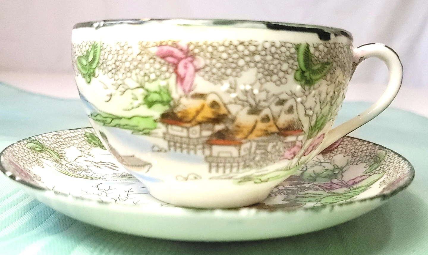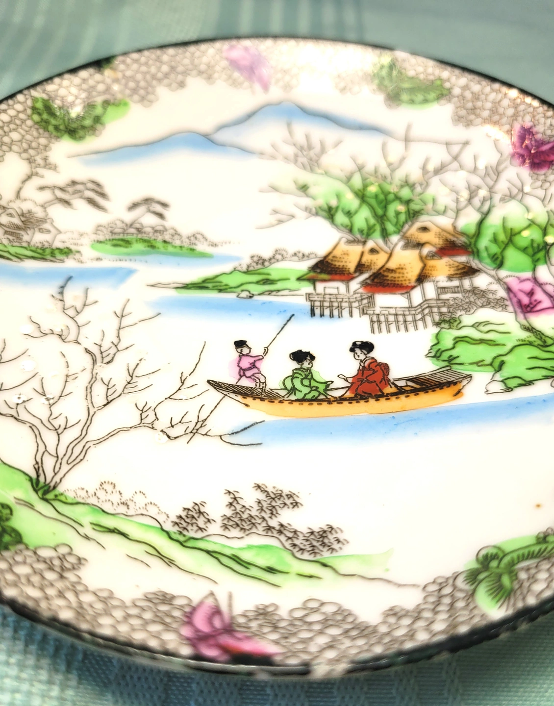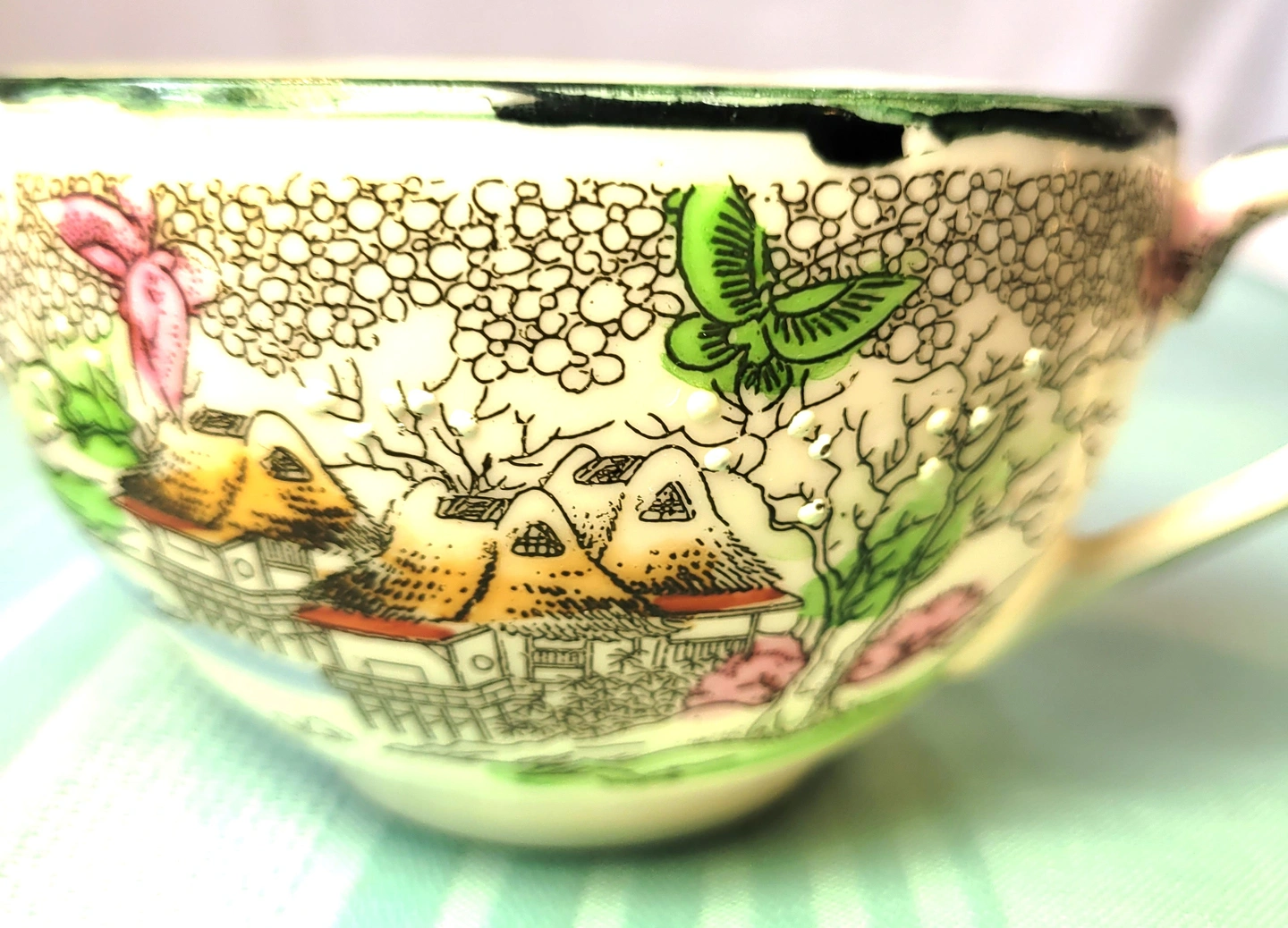 Antique Japanese Hand Painted Tea Cup & Saucer - 1920s Landscape