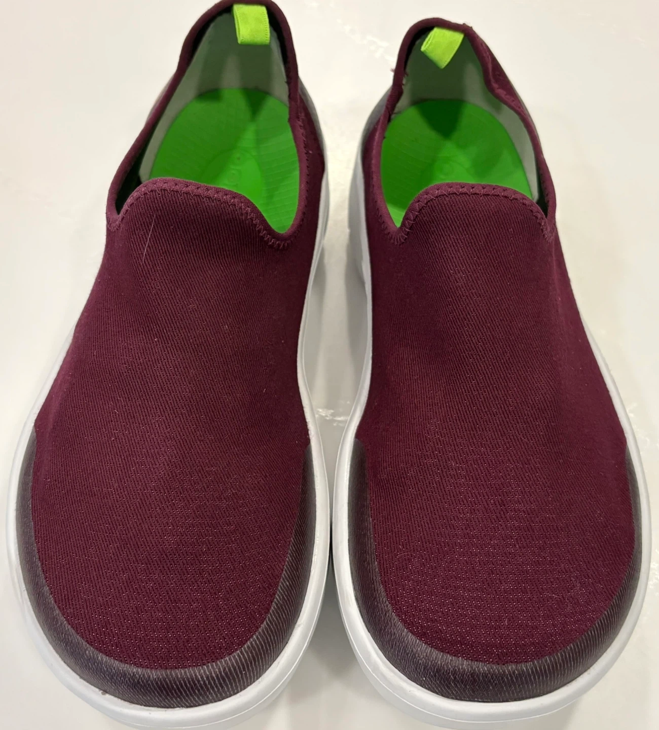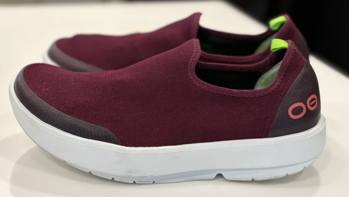 OOFOS EEzee burgundy slip on shoes. These are women’s 9 They're made in Vietnam.soles shows some wear down
