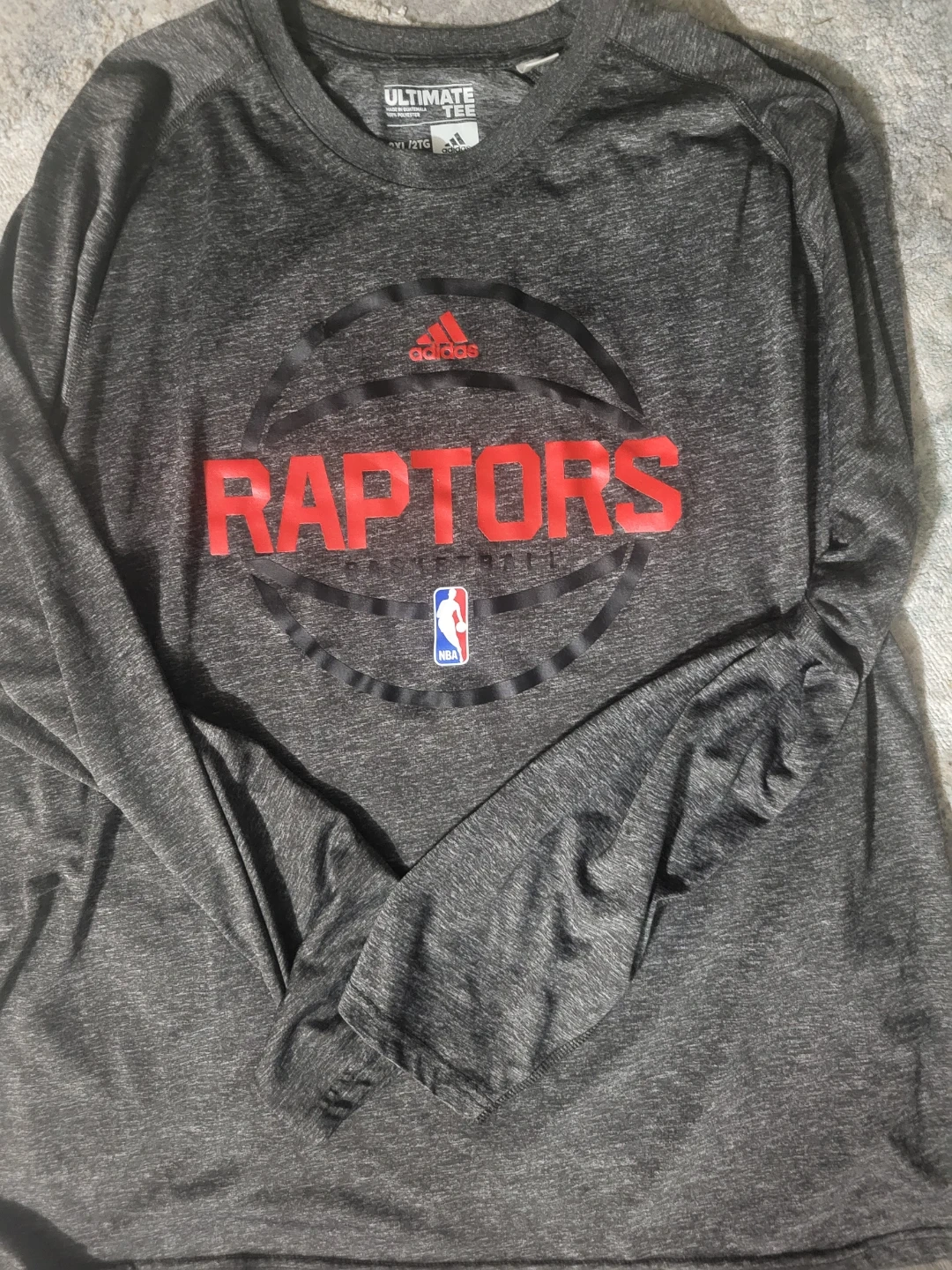 This is an Adidas long-sleeved t-shirt featuring the Toronto Raptors basketball logo. It's a size 2XL/2TG. Made in Guatemala.