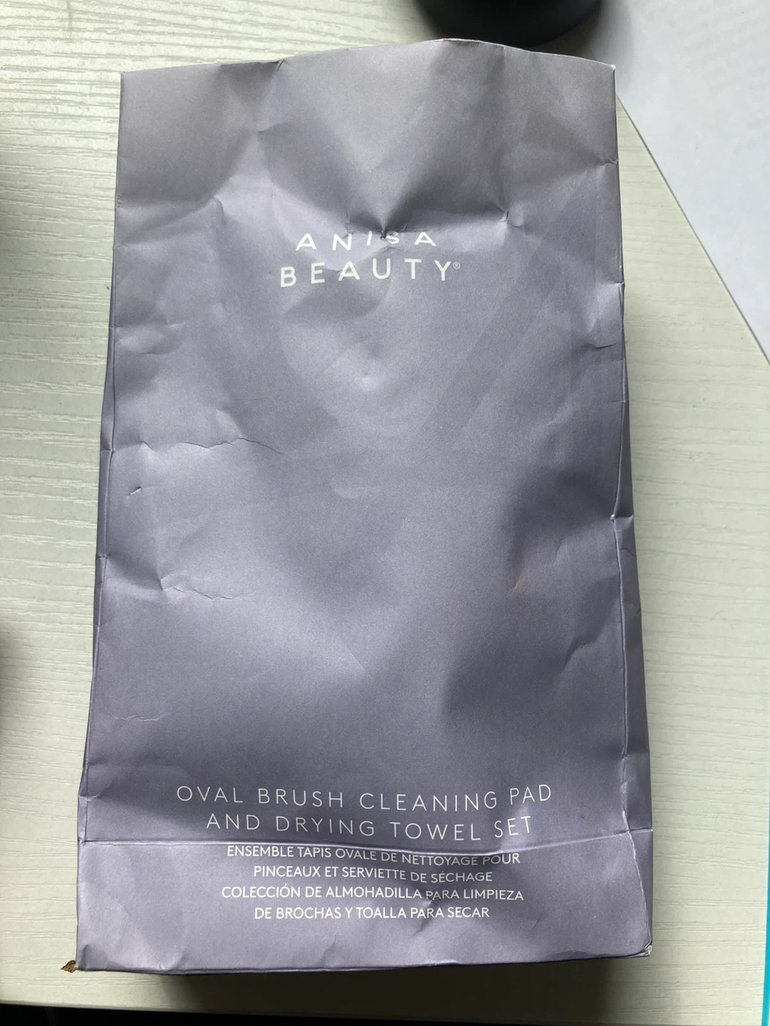 Anisa Beauty Oval Brush Cleaning Pad and Drying Towel Set. For cleaning and drying makeup brushes. Oval pad and towel included.