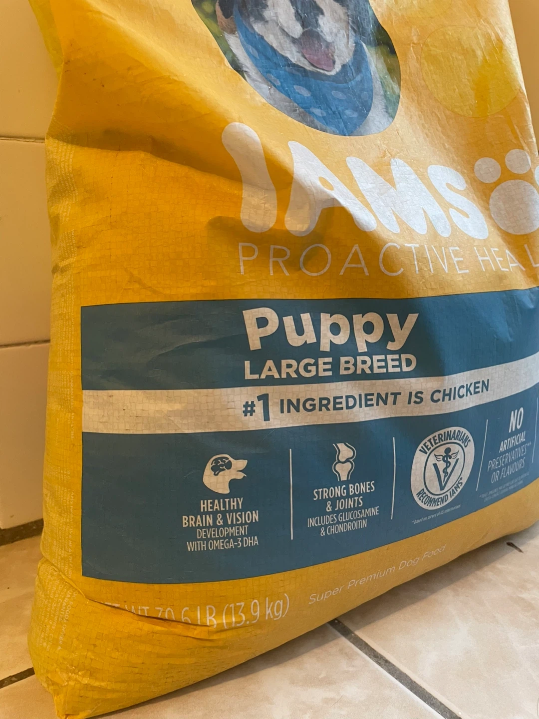 Says large breed but kibble is small, so can be used for some smaller dogs