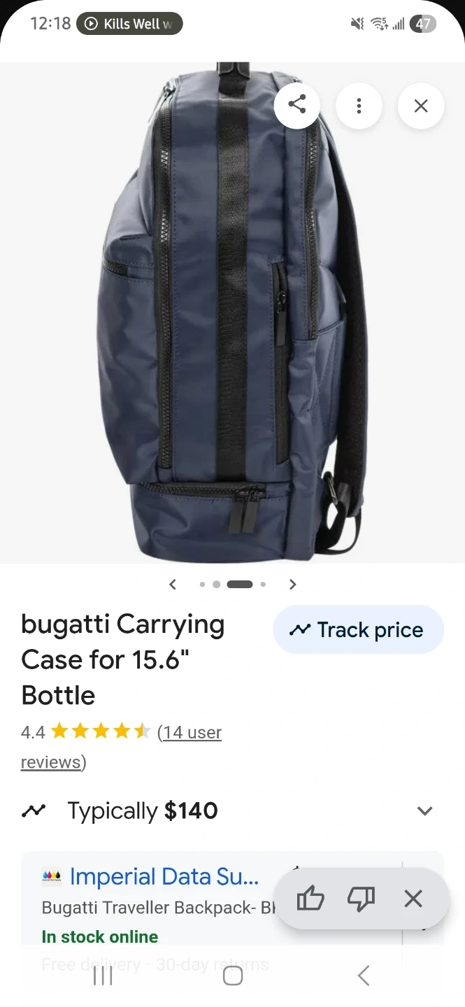 This Bugatti backpack is a carrying case designed for work, school or travel. It's a navy blue colour with multiple zippered compartments. This bag is great for travel and everyday use!