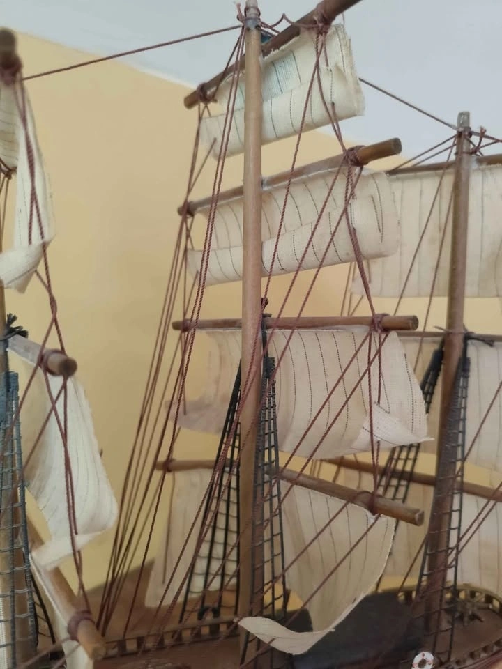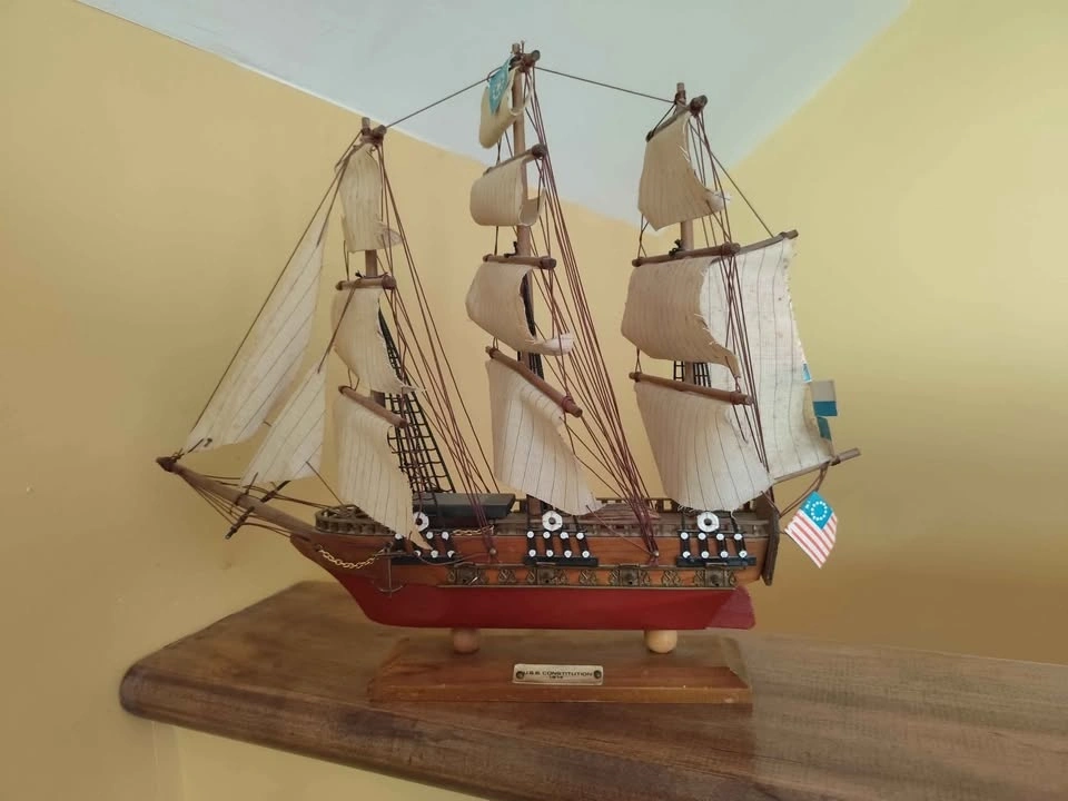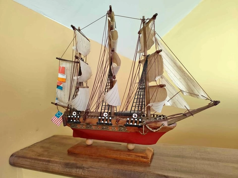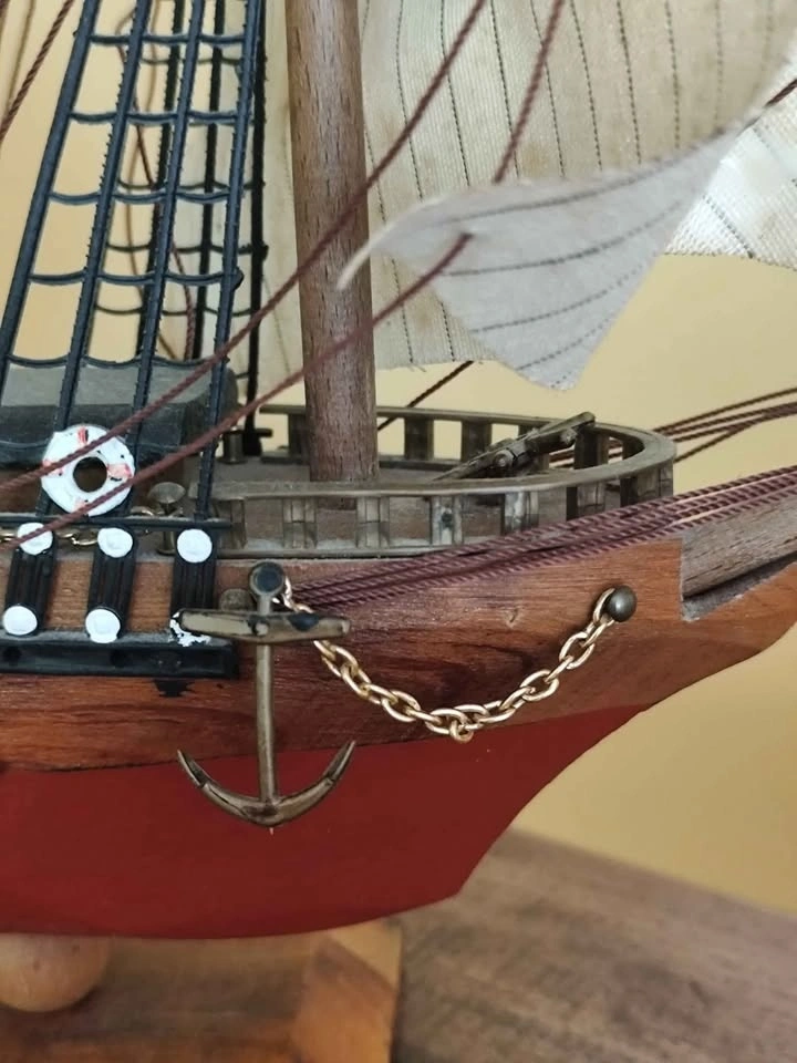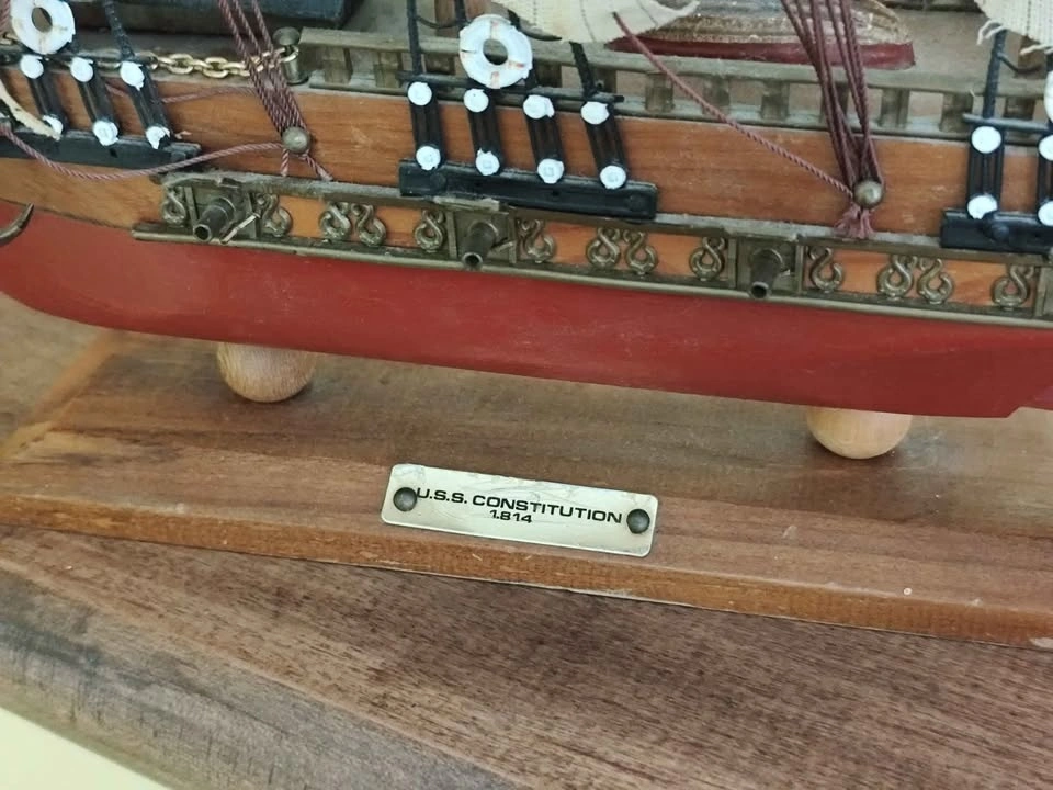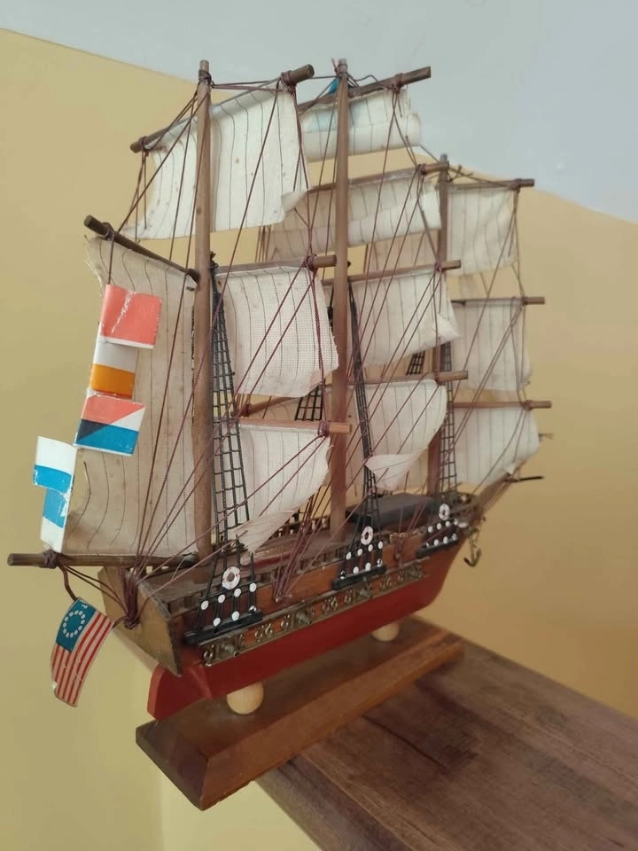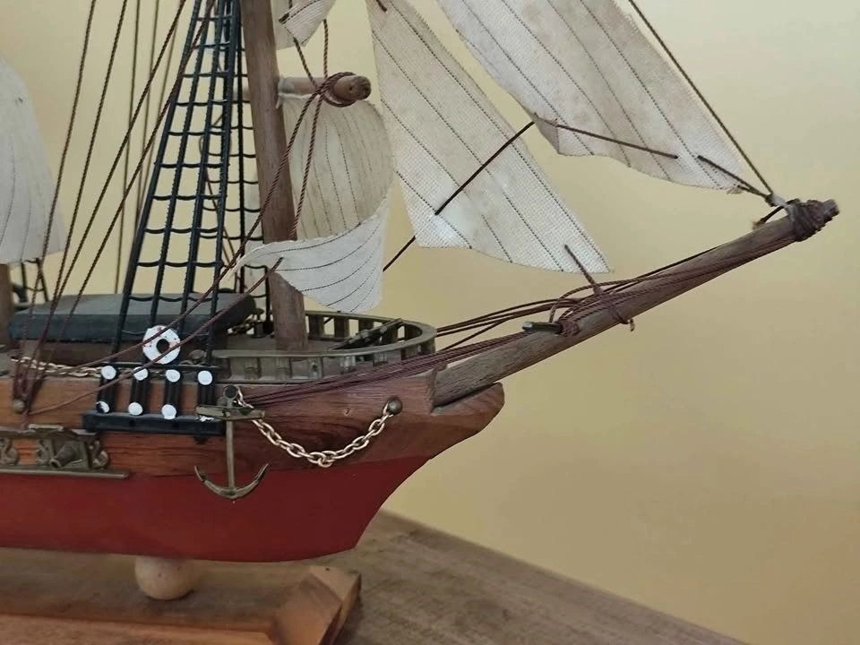 16 inch wooden model ship with lots of detail and beautiful work. Includes stand. Nothing broken or torn, in very great condition.