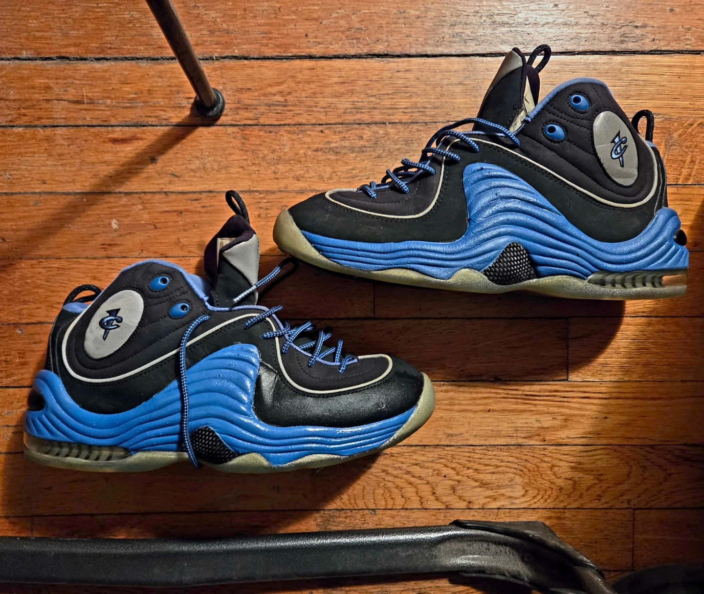 Selling a pair of Nike Air Max Penny 1s in a cool black and blue colorway! These shoes are in great condition and ready for a new owner. They feature the iconic Penny Hardaway logo on the side and a comfortable Air Max sole. No box included. Stored in airtight bag for storage purposes.