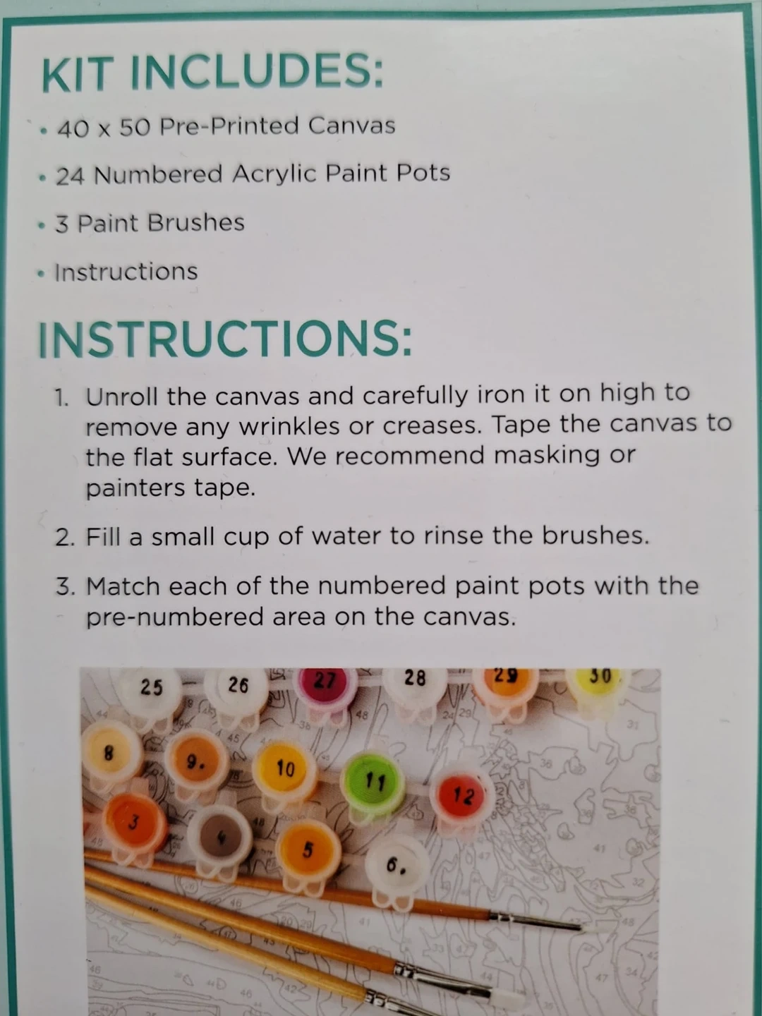 Paint by numbers craft kit. Purchased a few years ago so the paint may have dried up. But the canvas and paint brushes can still be used!