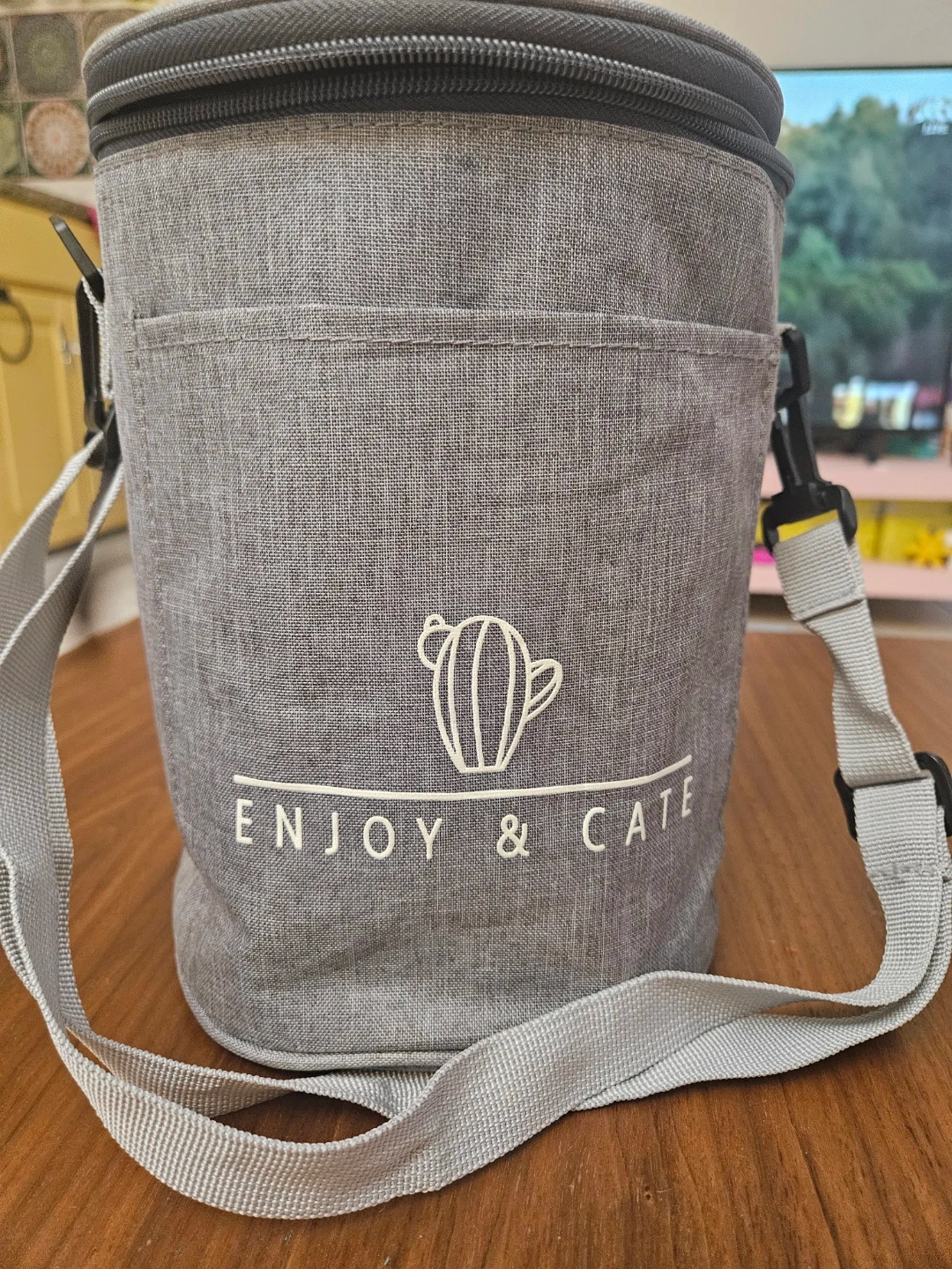 Stainless steel stacking lunch box. Comes with four stackable containers. Includes an insulated gray carrying bag. Perfect for taking meals on the go!