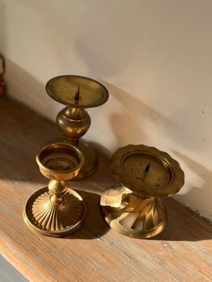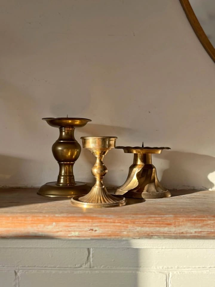 Vintage Solid Brass Candleholders | Mantel Decor | Set of 3