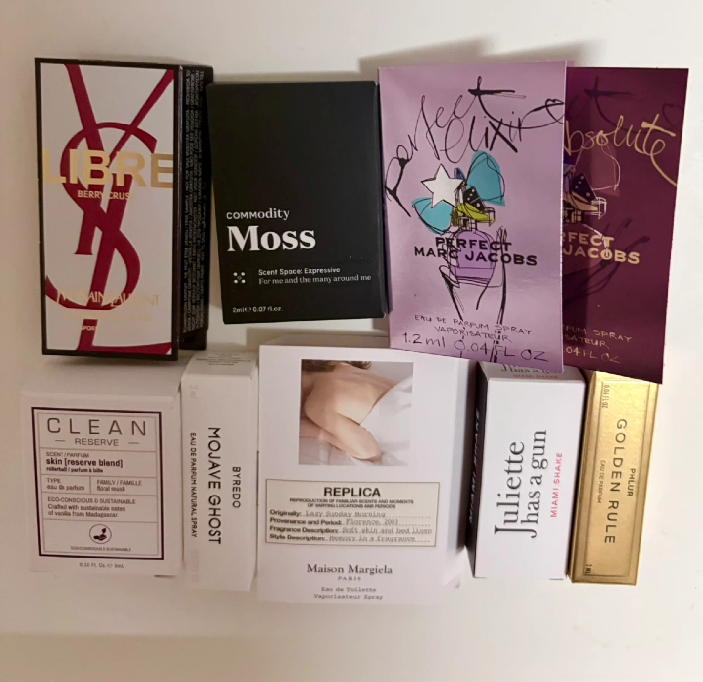 It features scents like YSL Libre, Marc Jacobs Perfect, Replica, Byredo Mojave Ghost, Clean Reserve, Commodity Moss, Juliette Has A Gun Miami Shake, and Phlur Golden Rule