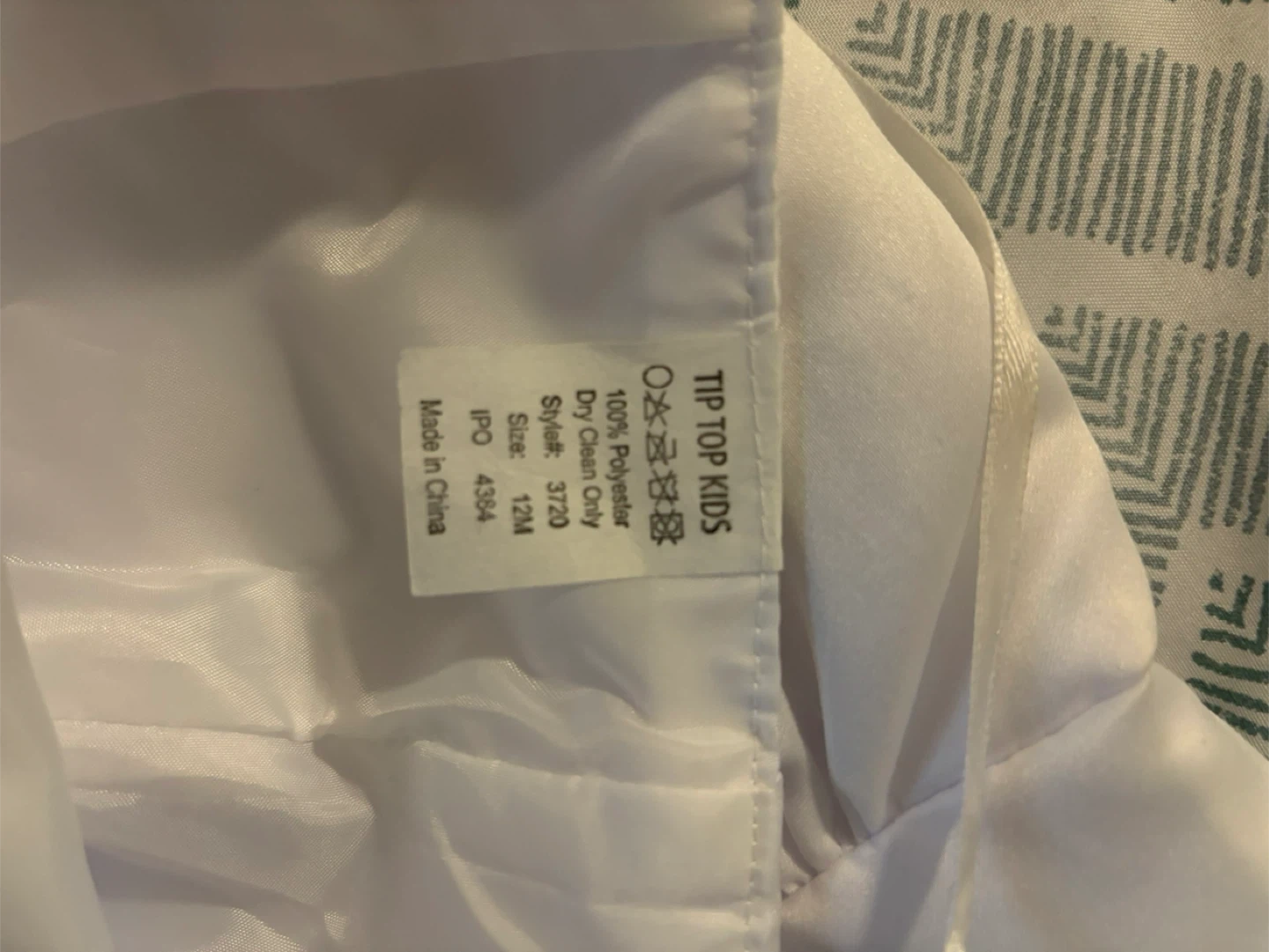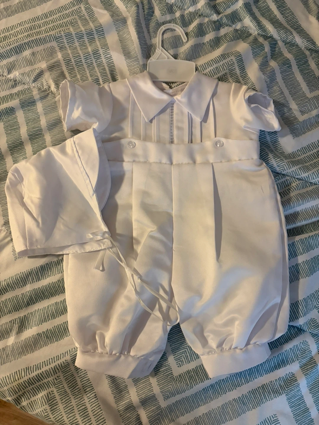 Tip Top Kids christening outfit. It includes a matching bonnet. Size is 12 months.