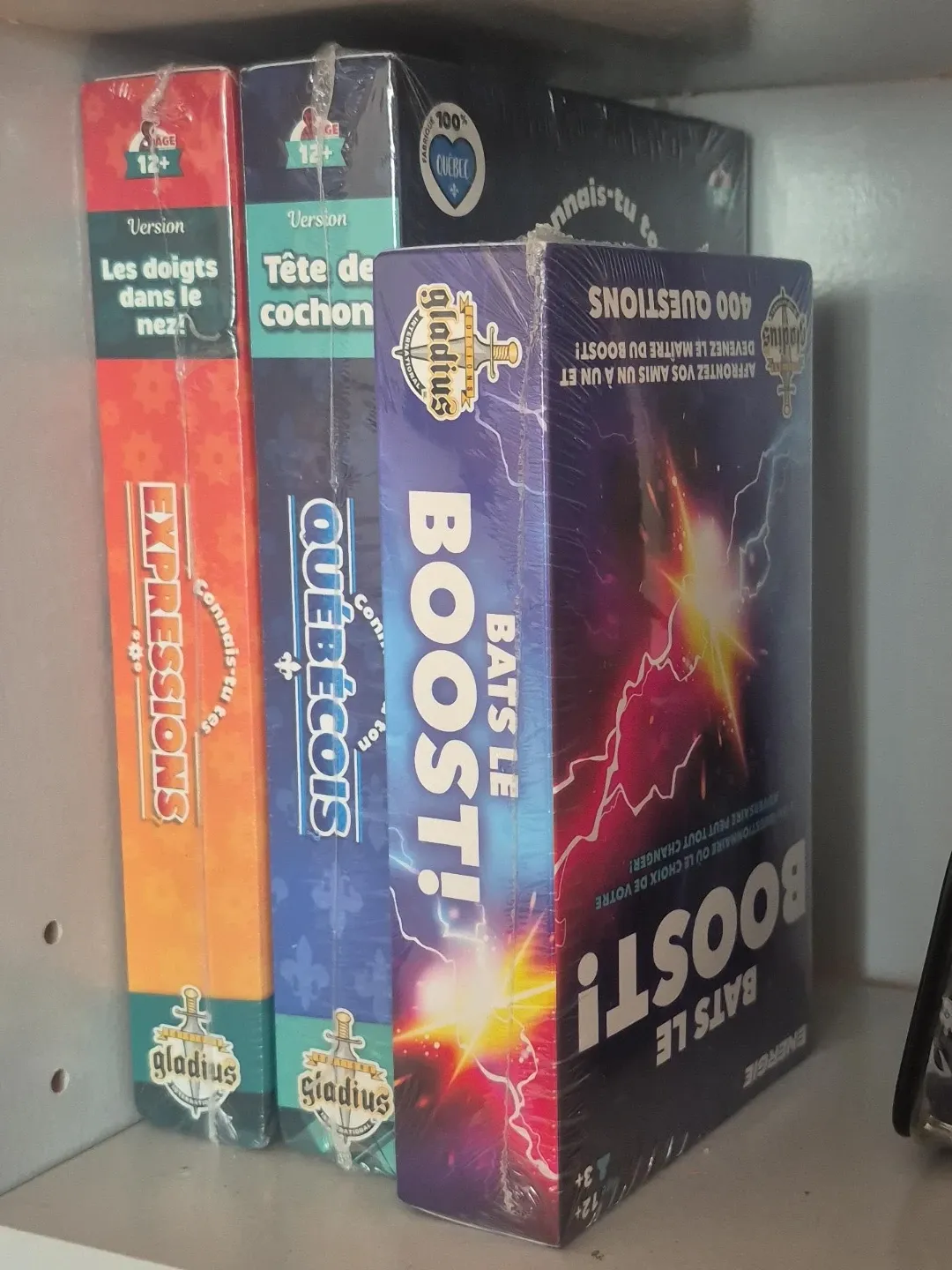 Jeu de société Gladius Boost! avec 400 questions incluses. Affrontez vos amis un à un et devenez le maître du jeu. Parfait pour les 12 ans et plus.