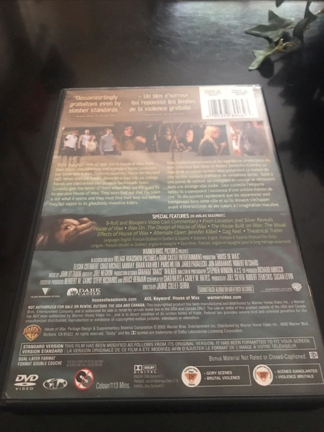 This is the Full-Screen Edition of the horror film House of Wax. It's the 2005 version, modified from the original. Includes bonus material and commentary.