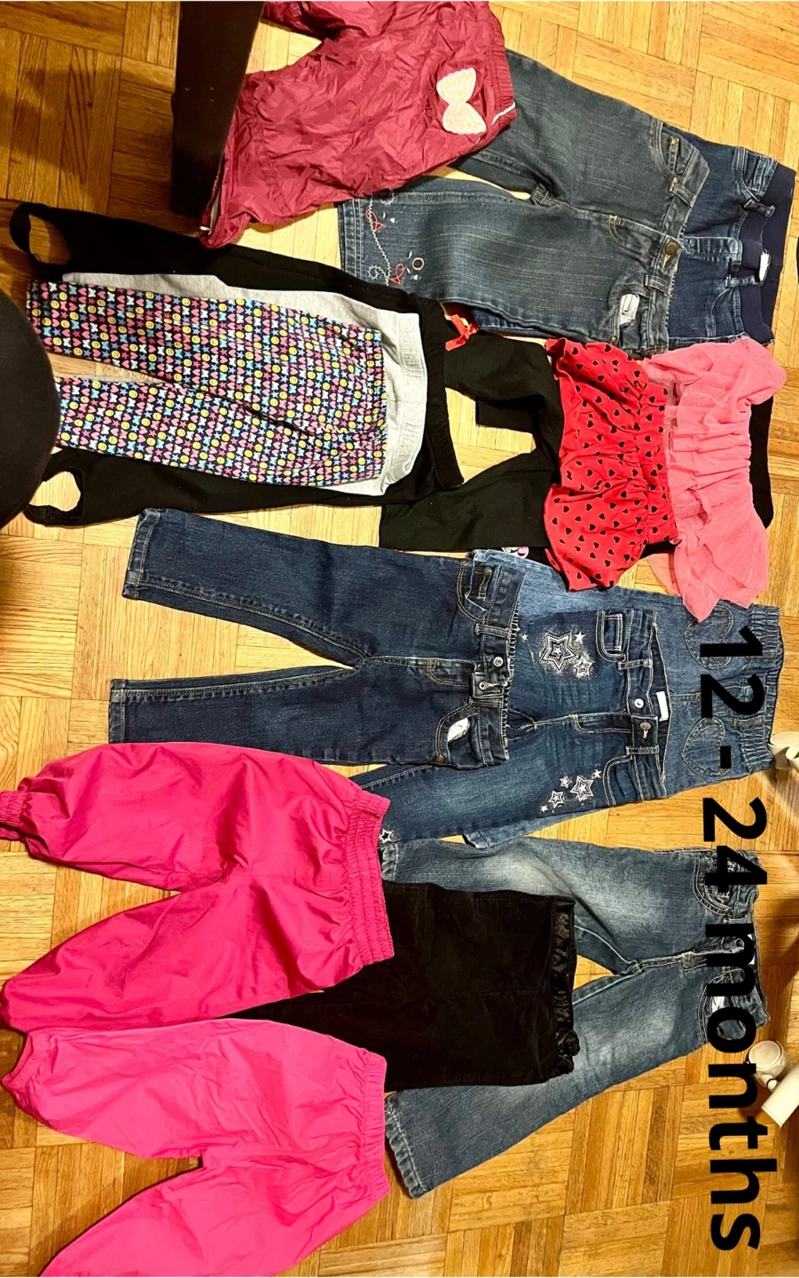 * Lot 12 -18 months includes 25 dresses, 8 onesies, 7 bodysuits, 15 pairs of pants + 3 pairs of rain pants, 4 outfits, 11 blouses, 8 sweaters, 7 jumpsuits, 14 pairs of shorts and skirts.