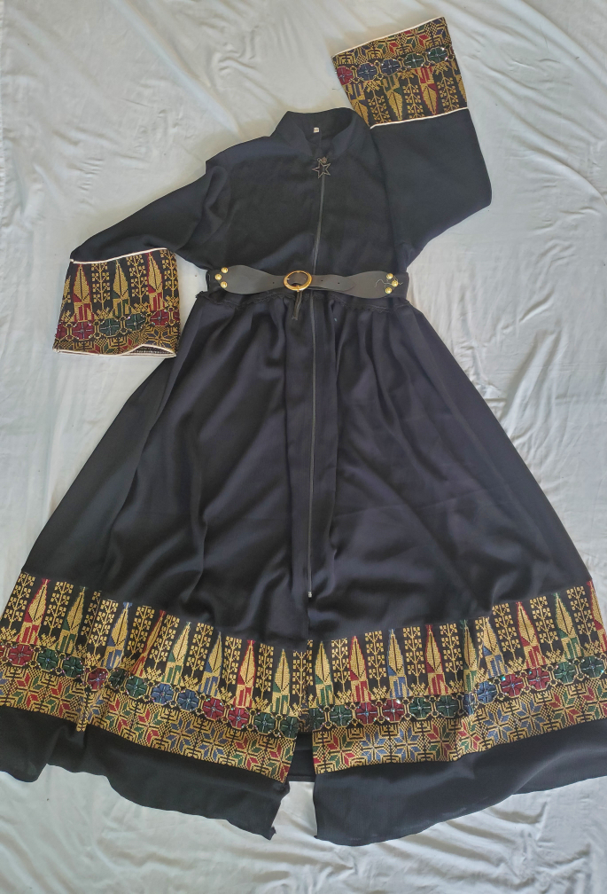 23Black abaya with belt and a zipper for easy opening. It features intricate embroidered designs at the beginning of the sleeves and skirt, enhancing its elegance. Suitable for various occasions, providing both comfort and style.#everydaystyle #EmbroideredAbaya