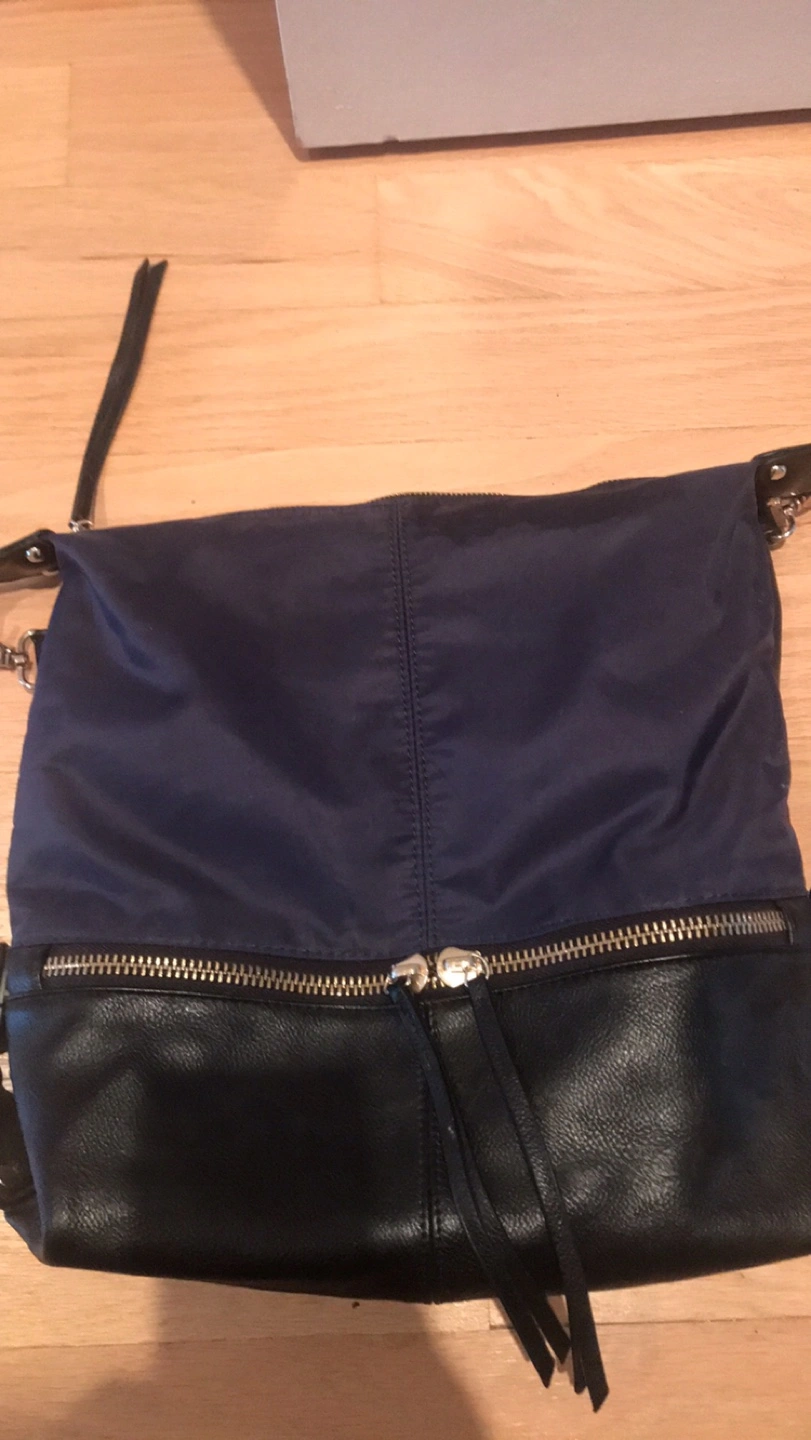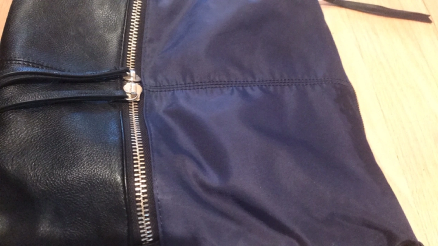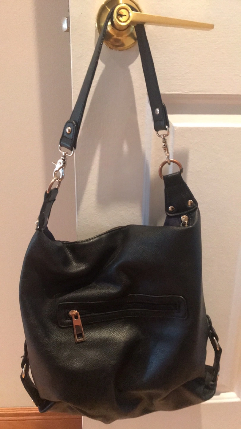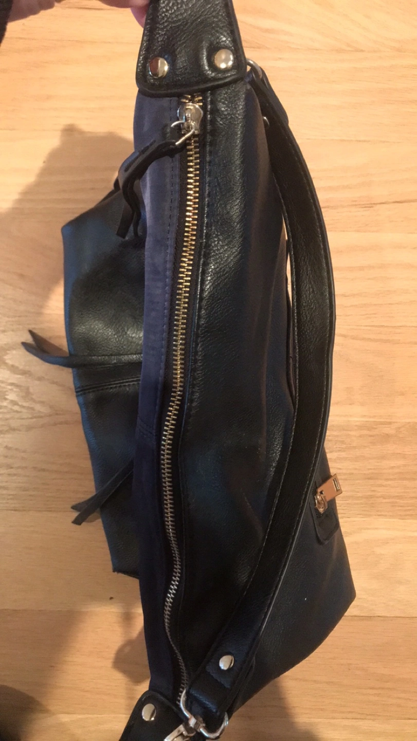 A stylish Sondra Roberts Squared black and blue leather shoulder bag that's perfect for everyday use! It features a zipper and strap for a comfortable fit. The bag has a sleek design and is in great condition. Pick up location is 10 Alcorn Avenue Toronto M4V1E4