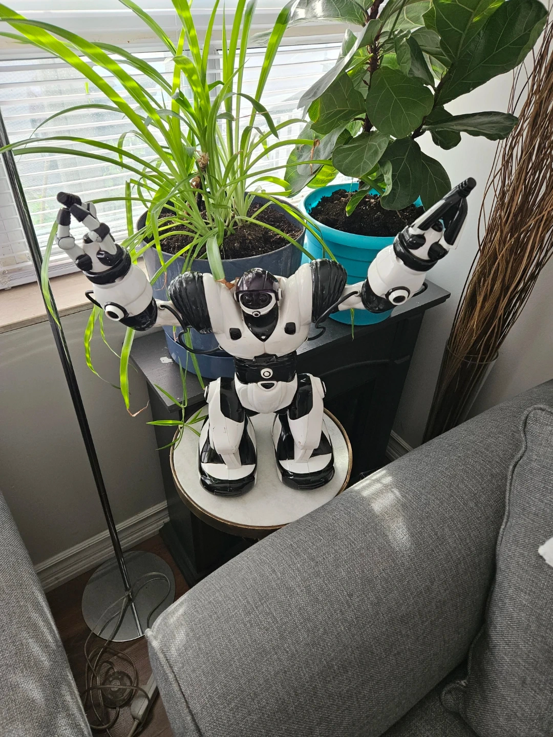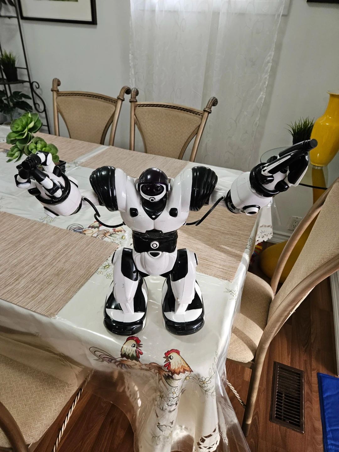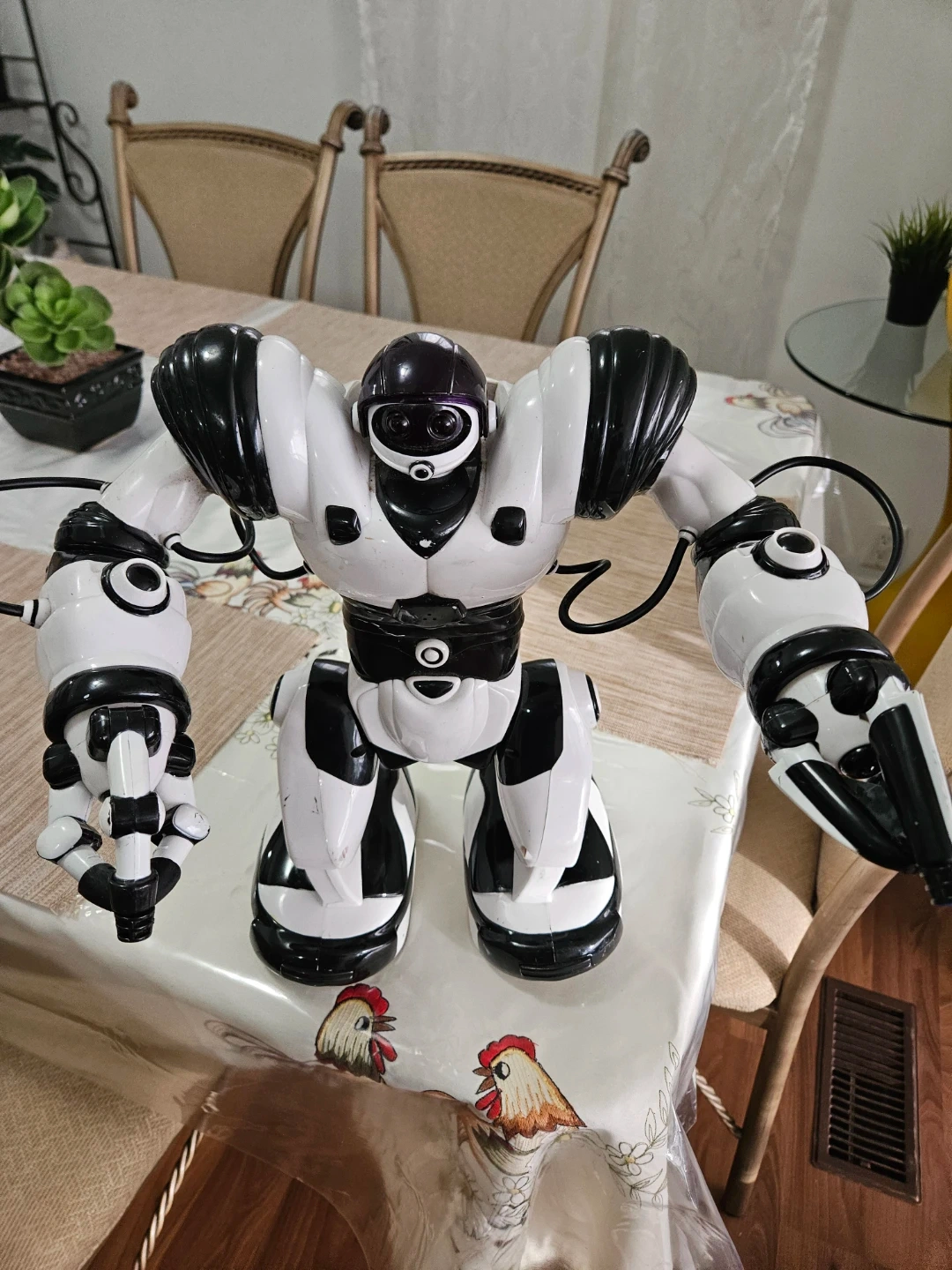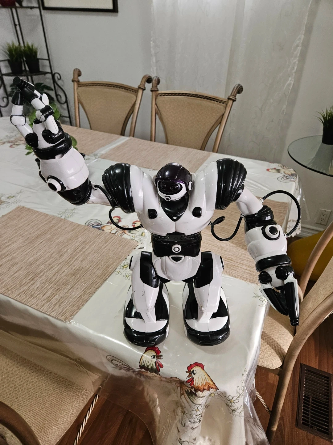 38Selling a black and white robot toy. It's in good condition and ready for a new home! Great for kids who love robots and imaginative play
