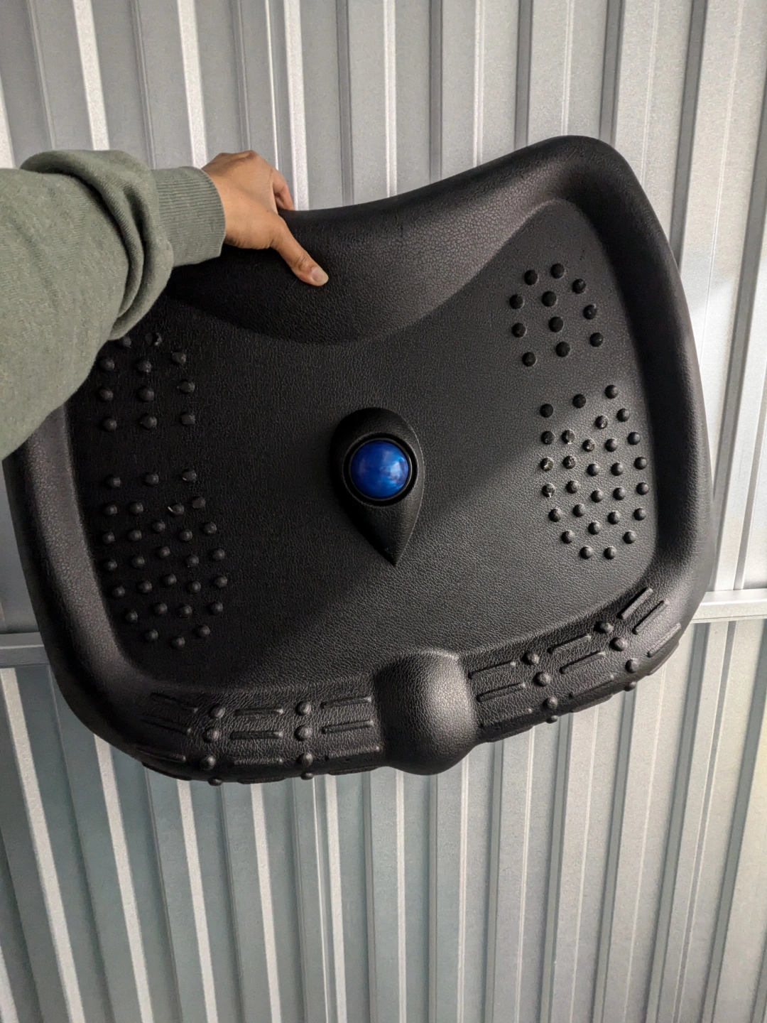 Ergonomic comfort mat. Features textured surface and raised edges. Suitable for office or home use. Provides cushioning support. Originally $85