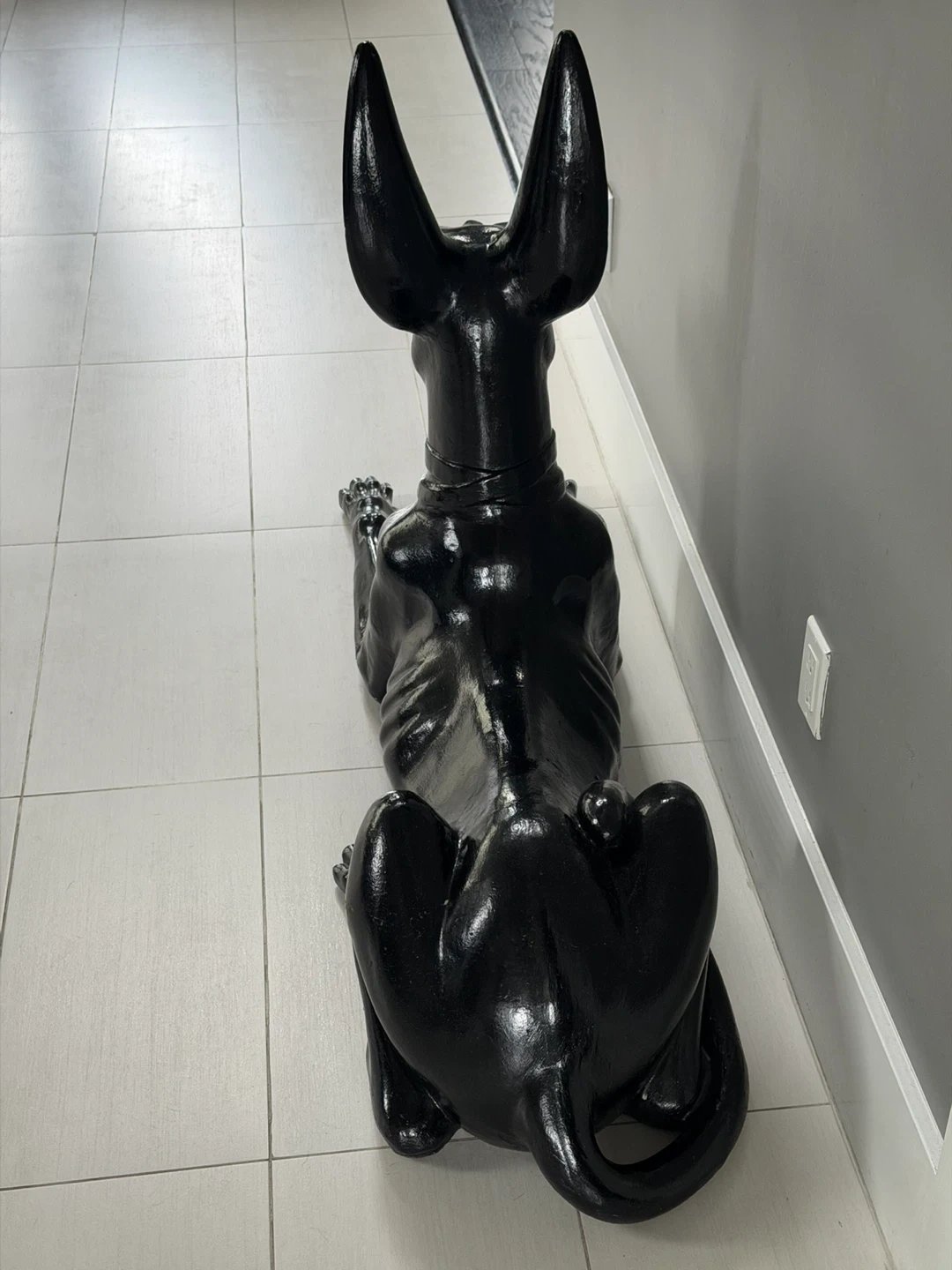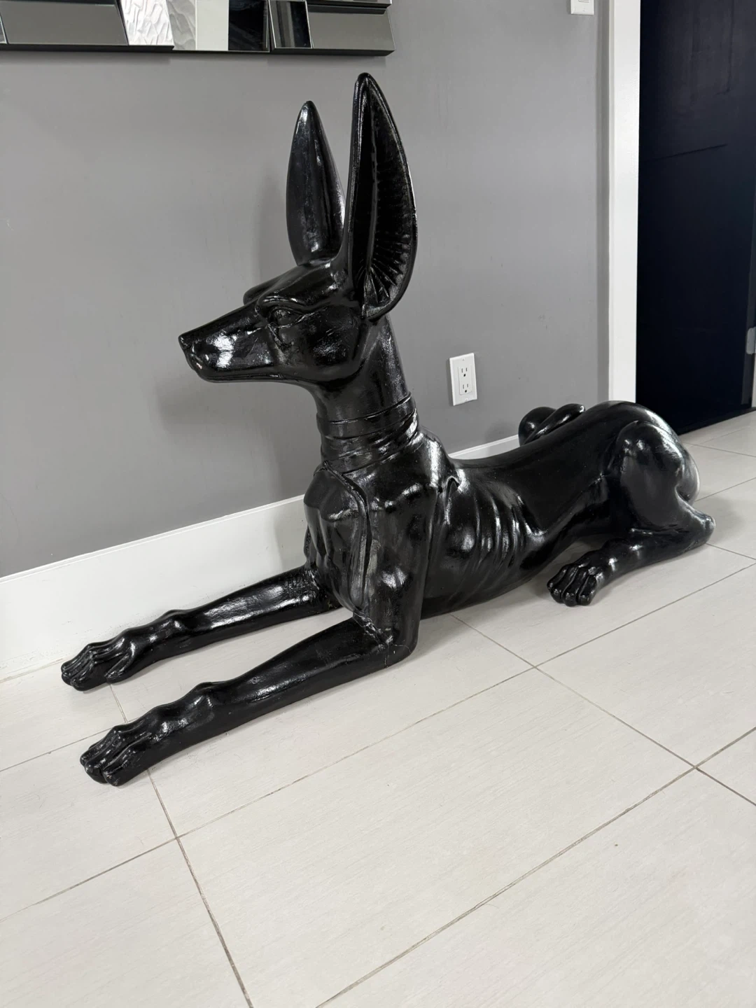Offering a striking black Anubis statue. This piece adds a unique and sophisticated touch to any space. Its sleek design and detailed craftsmanship make it a captivating decorative item for your home or office
