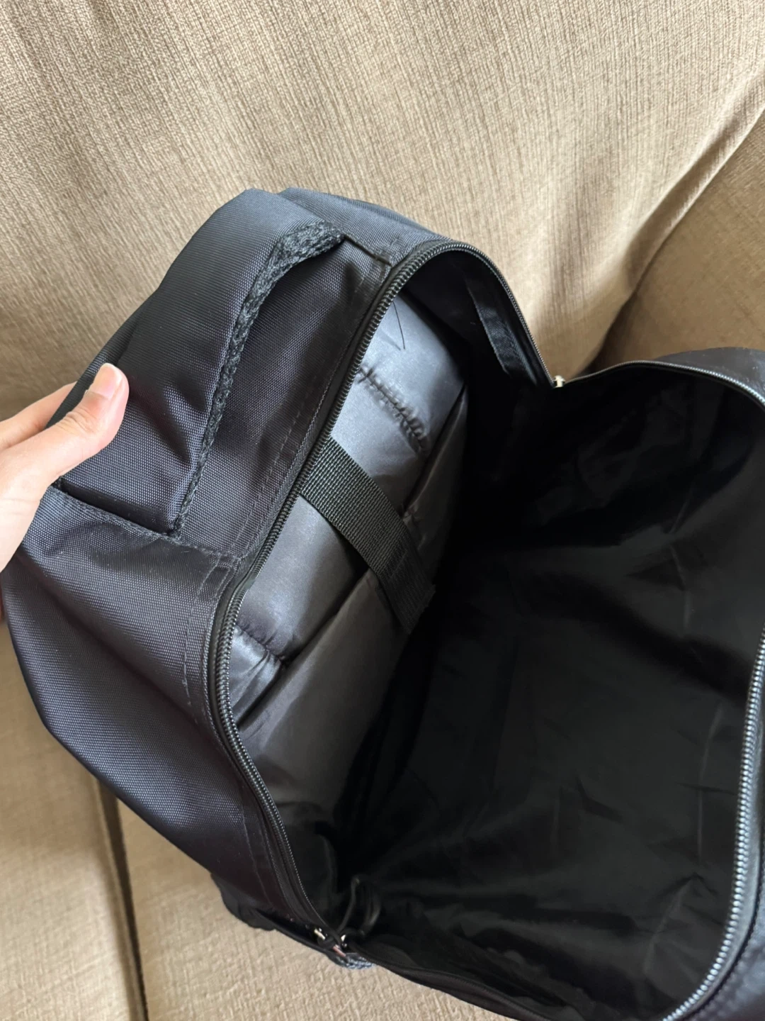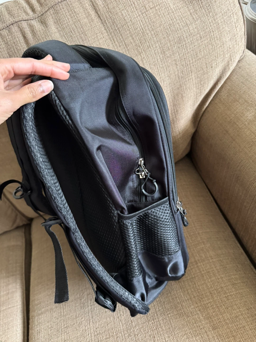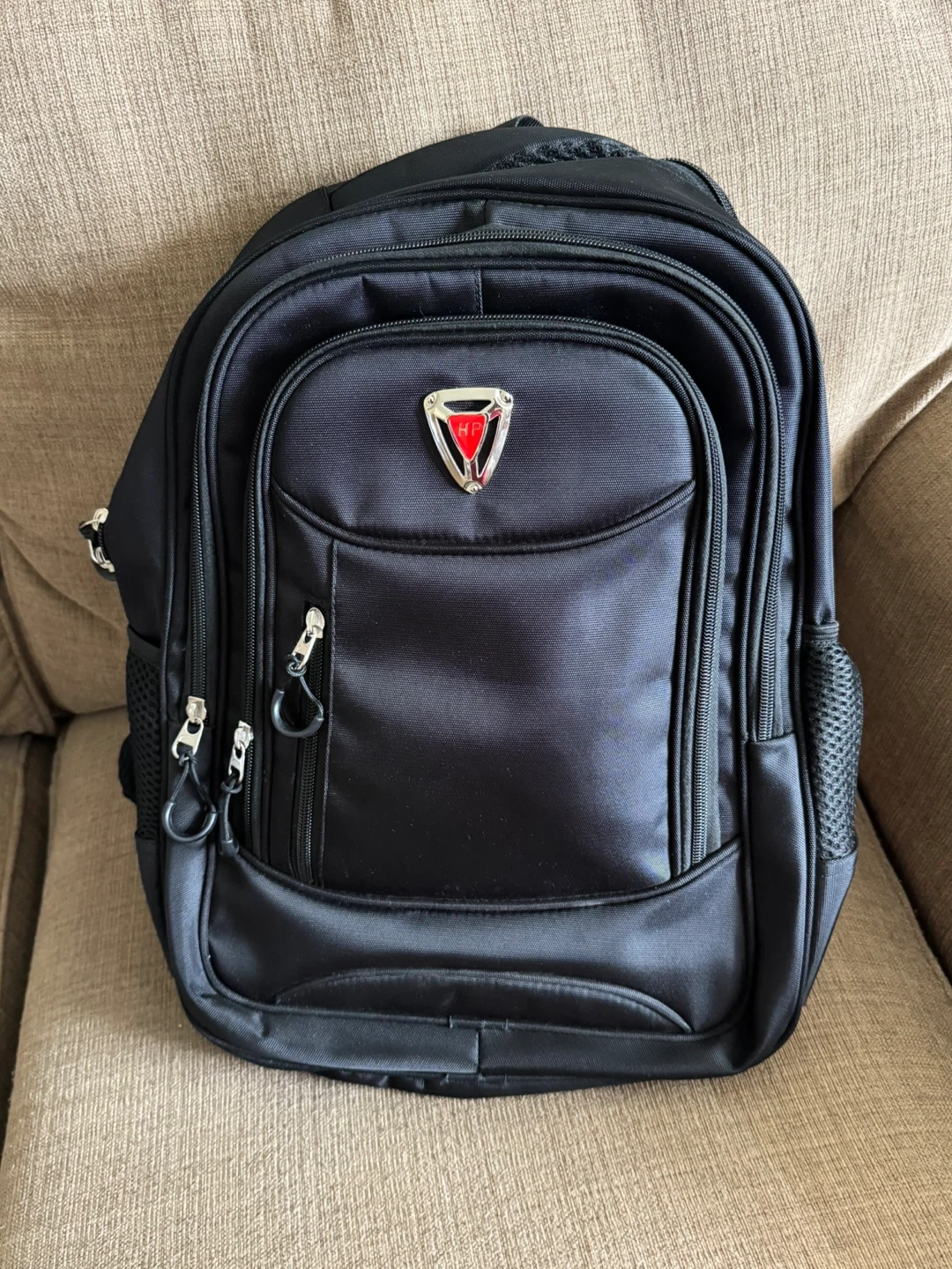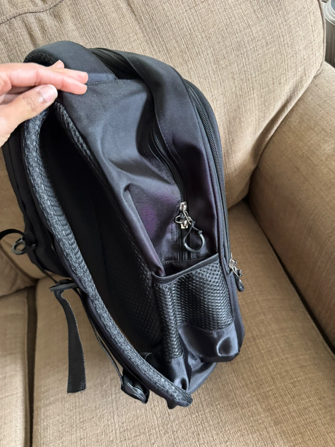 Selling a gently used black backpack. It has multiple compartments and is in great condition. Perfect for school, work, or travel!